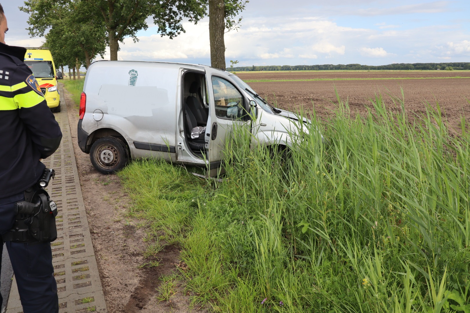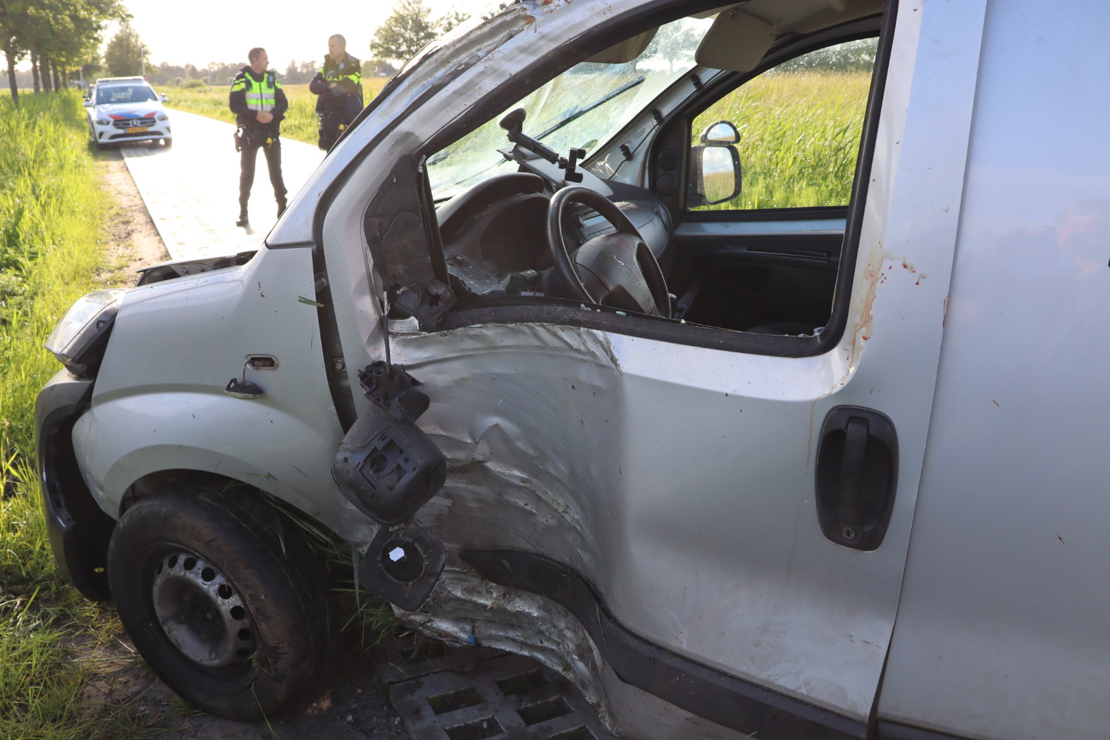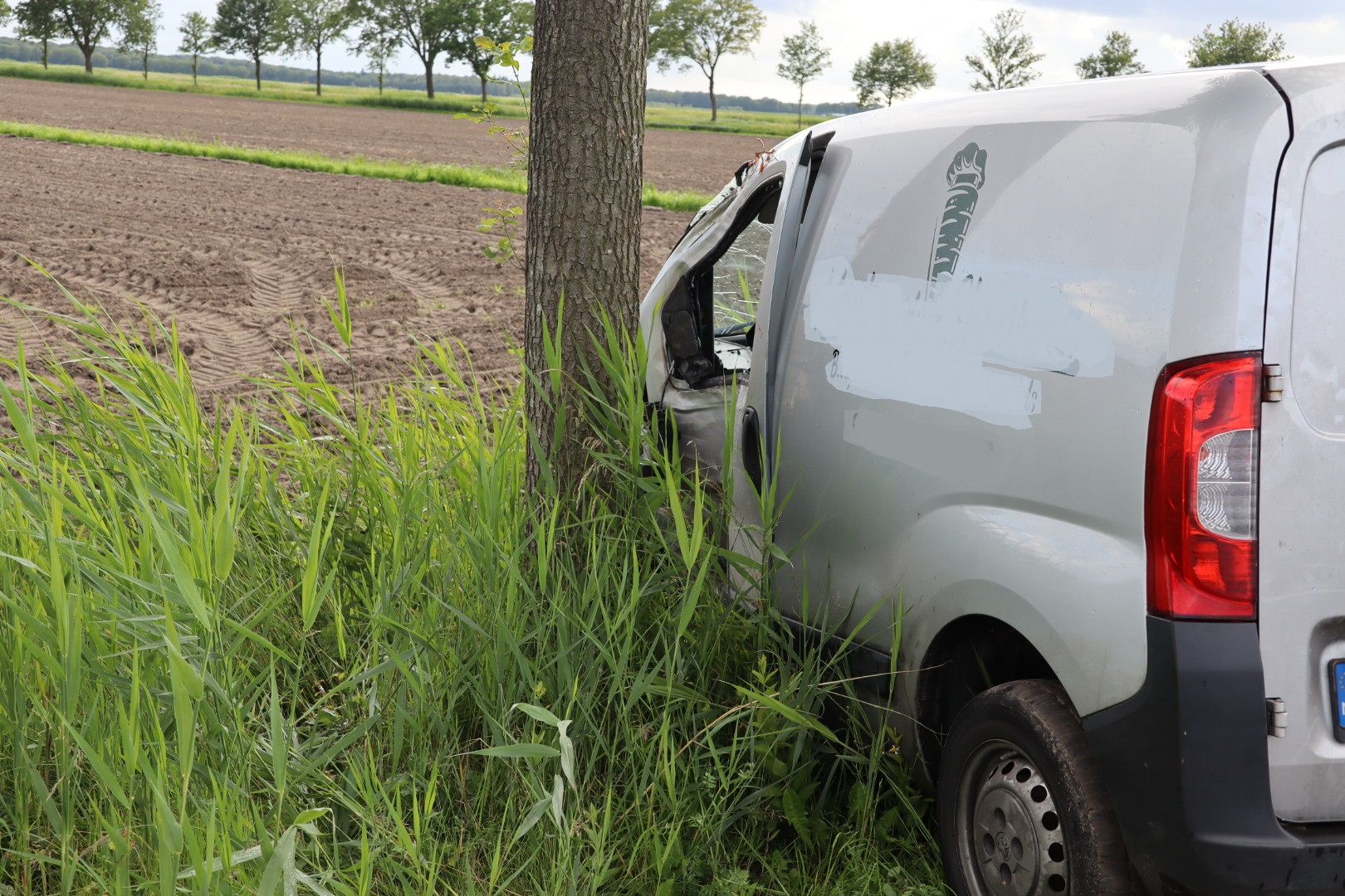 Bezorgauto botst tegen boom, bestuurder met spoed naar ziekenhuis