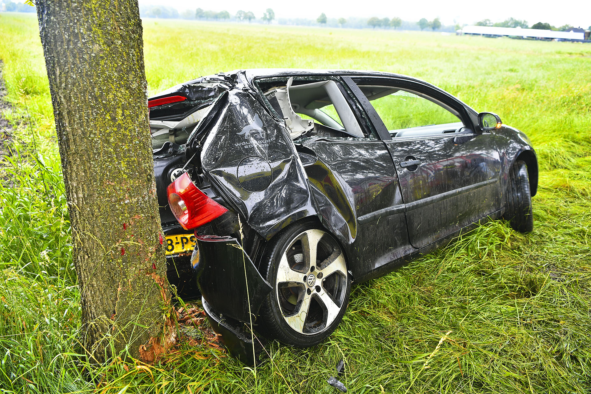 Jongeren botsen met achterkant van auto tegen boom
