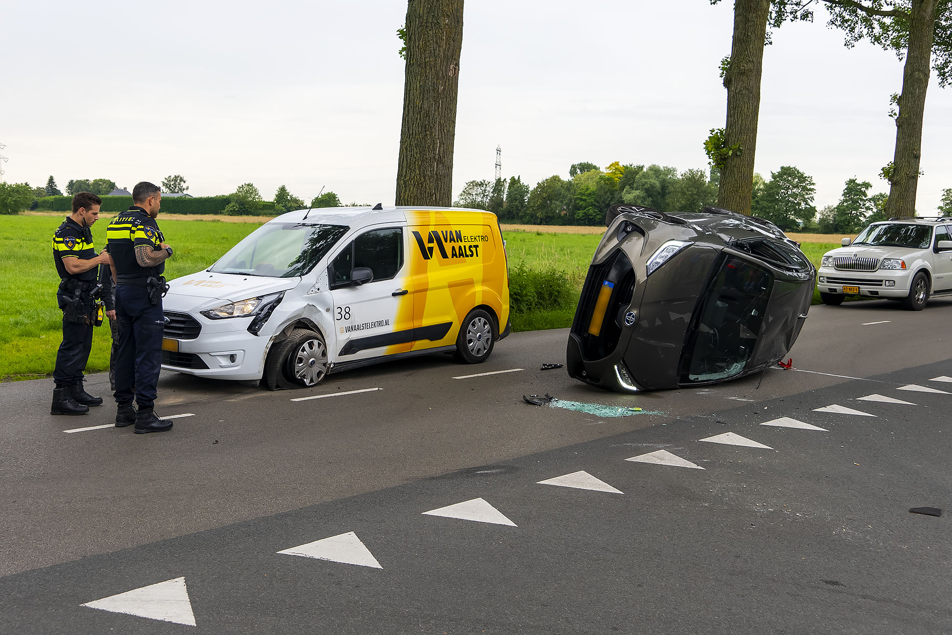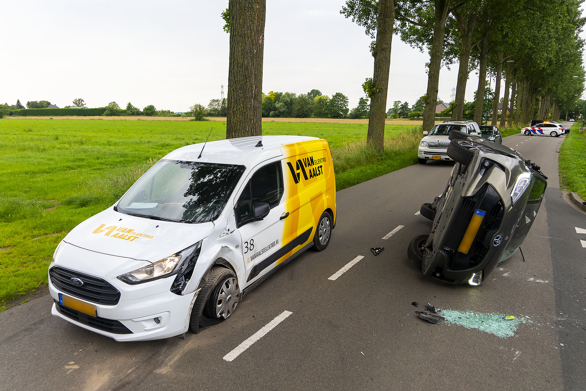 Een van de voertuigen sloeg daarna over de kop en kwam op zijn kant tot stilstand. De bestuurster kon met hulp van omstanders zelf uit haar auto klauteren. Ze is nagekeken door de ambulancedienst maar hoefde niet mee naar het ziekenhuis. De bestuurder van de andere auto bleef ongedeerd. Beide voertuigen raakten zwaar beschadigd en moesten door een berger worden afgevoerd.