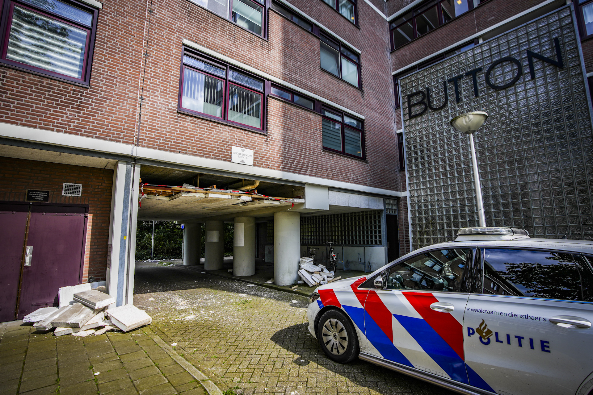 Deel plafond van onderdoorgang flat in Eindhoven ingestort