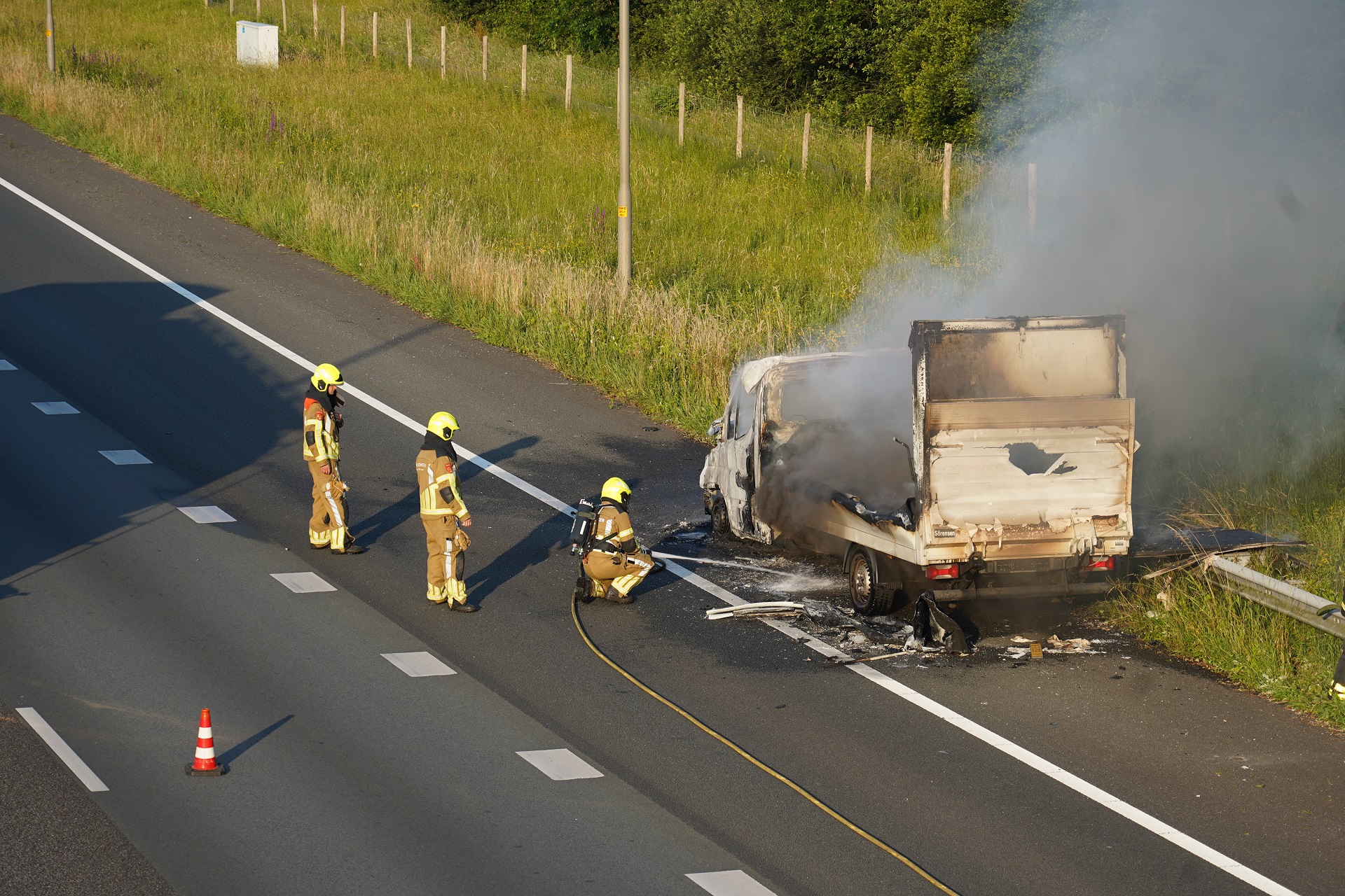 De brandweer was snel ter plaatse maar kon niet voorkomen dat de wagen door de brand verwoest werd. Vanwege de brand werden twee rijstroken afgesloten. Dit zorgt voor file.