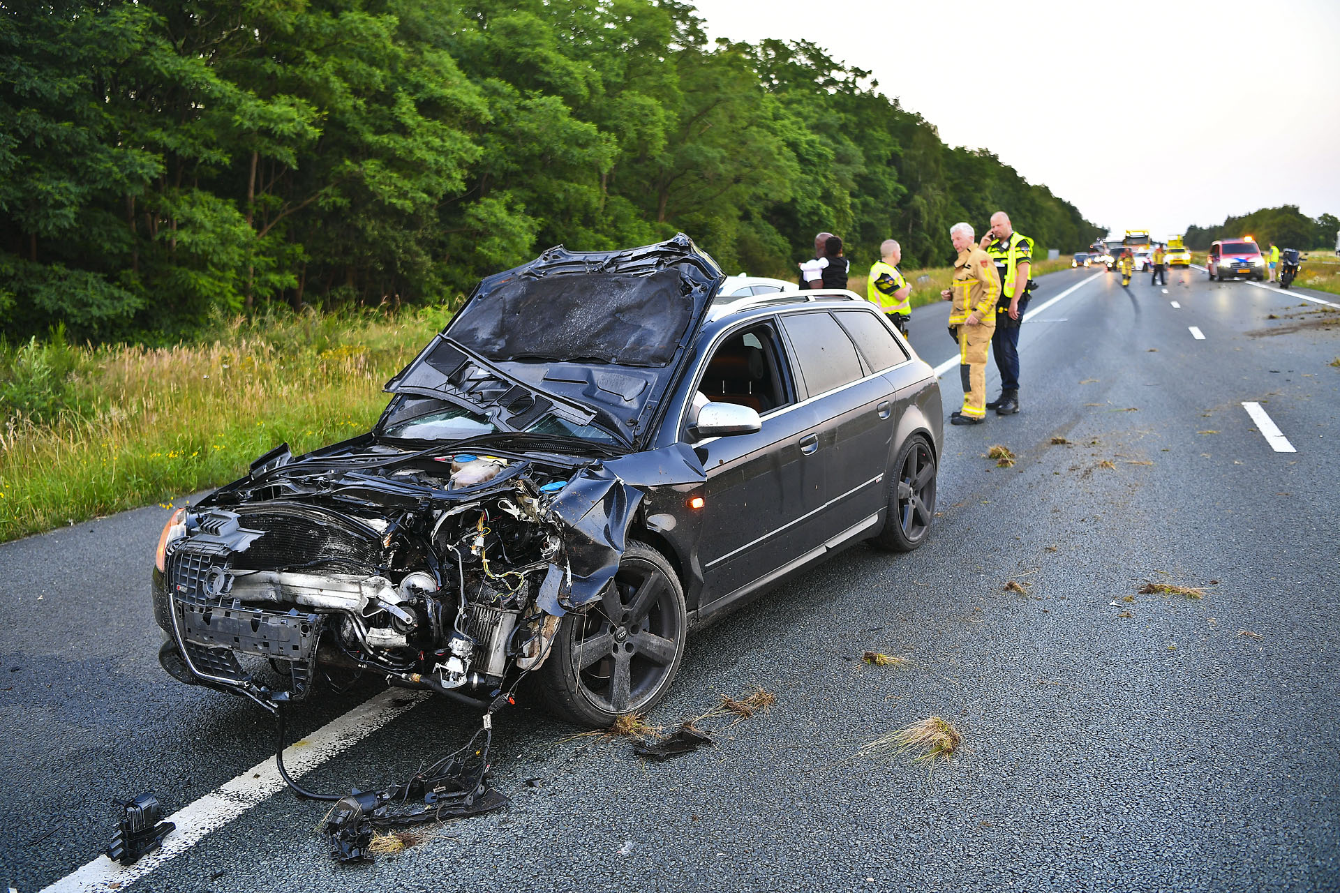Zoals het er nu naar uitziet heeft een personenauto de ander van achteren geraakt waardoor deze door de berm en over de kop gegaan is. De politie was verder nog uit aan het zoeken wat de oorzaak hiervan is. De weg  werd afgesloten maar later kon er op de vluchtstrook gecontroleerd gepasseerd worden.