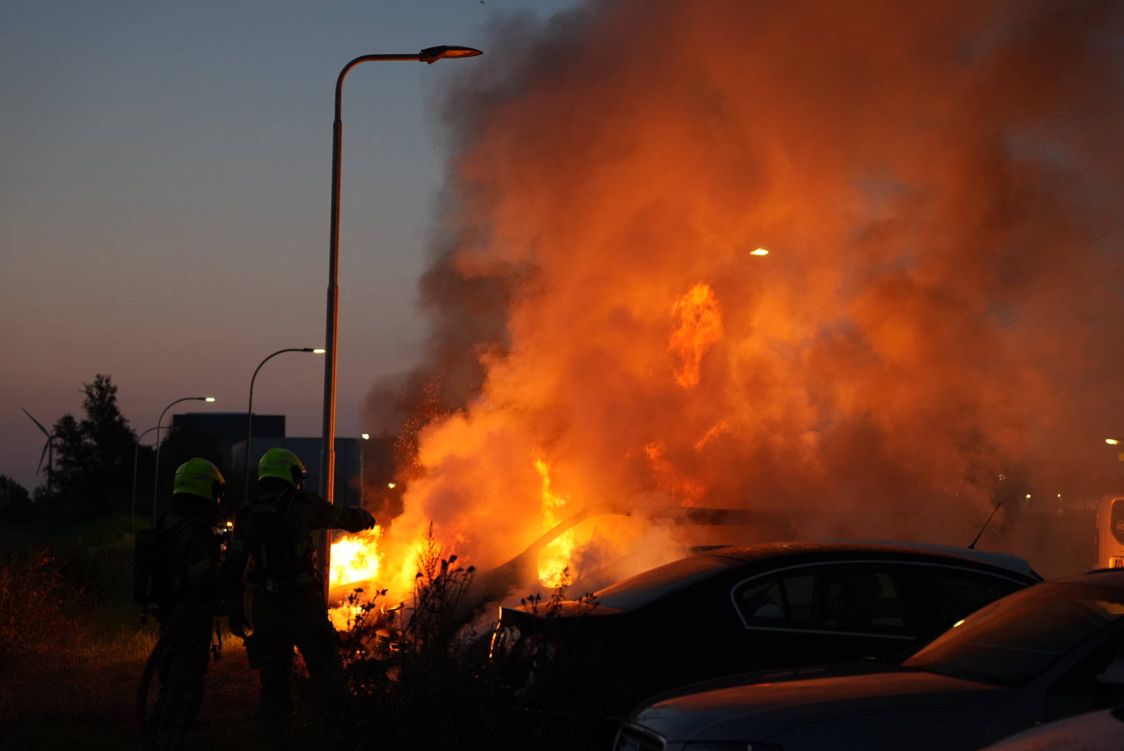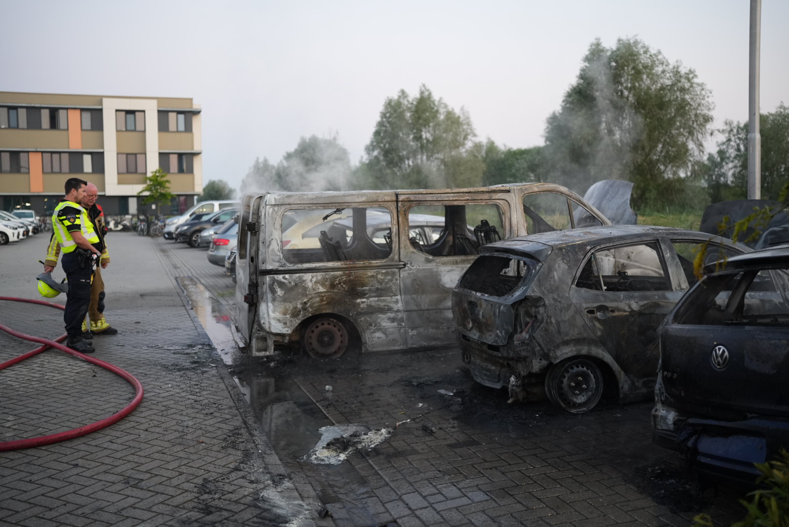 Vijf voertuigen door brand verwoest, mogelijk brandstichting