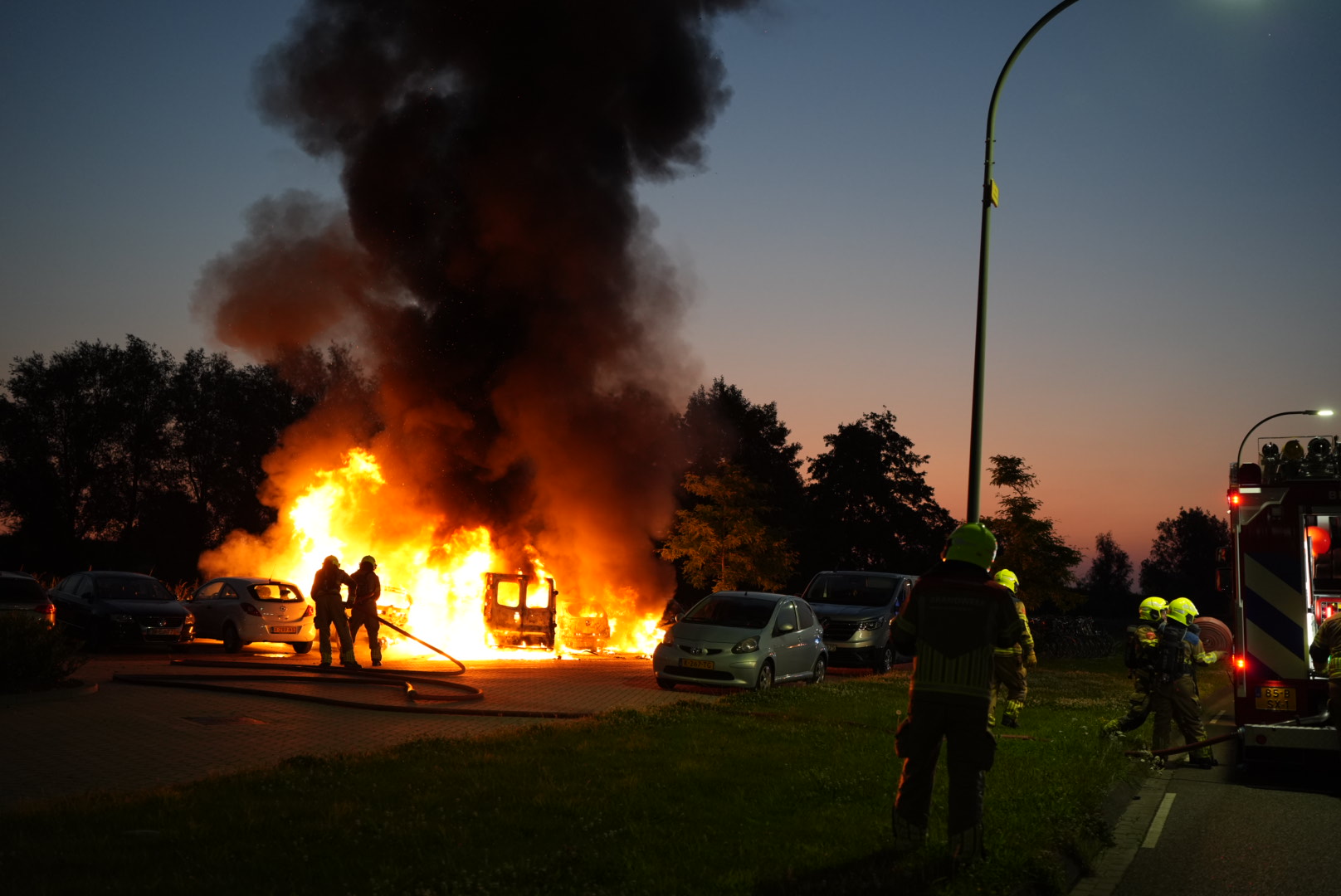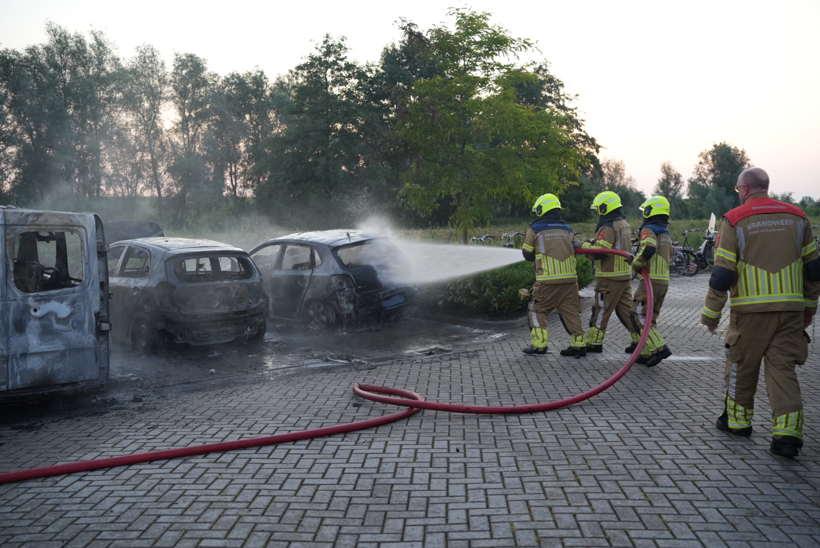 Vijf voertuigen door brand verwoest, mogelijk brandstichting