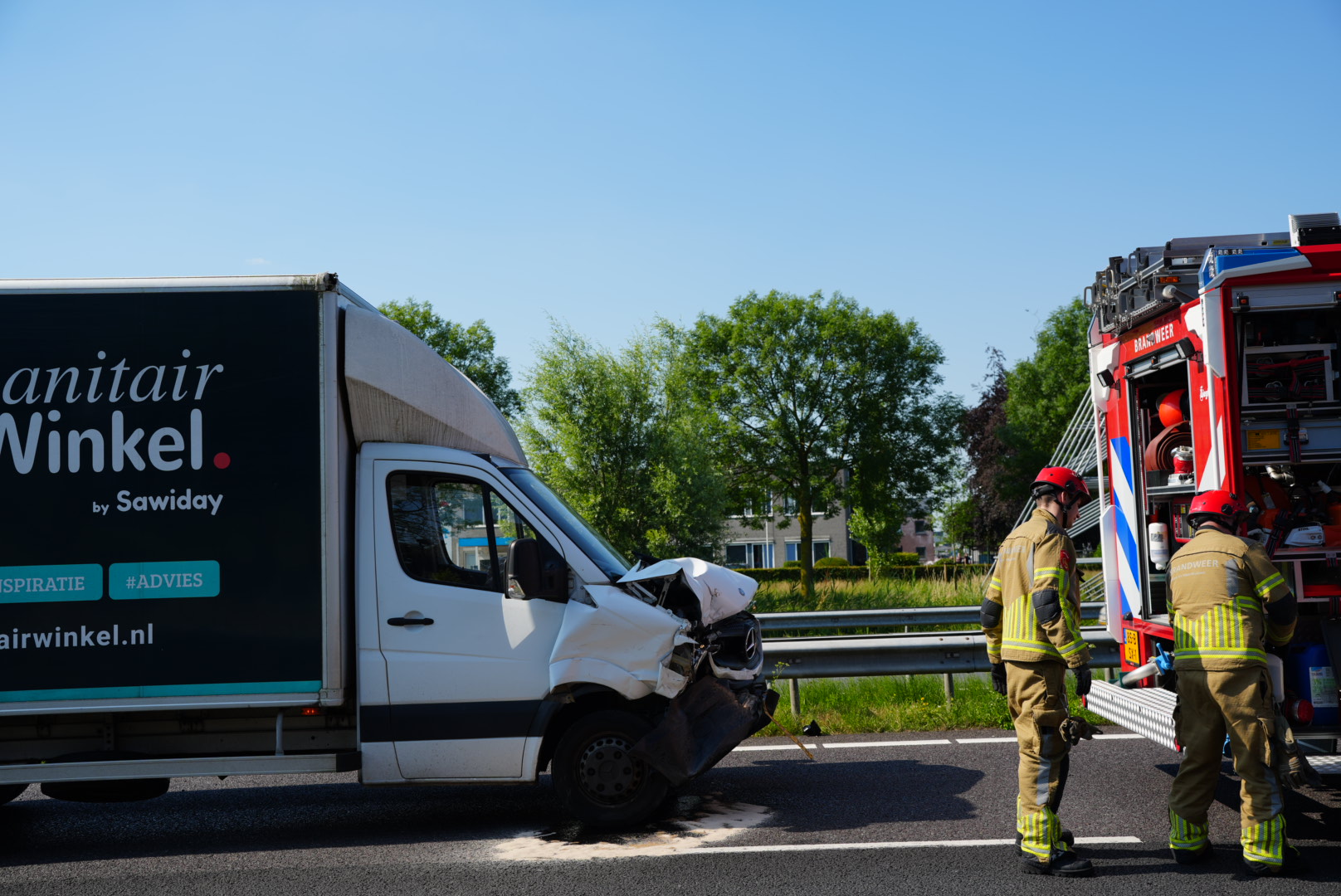 De twee mannen in het bakwagentje zijn in de ambulance nagekeken maar hoefden niet naar het ziekenhuis. Door het ongeval moest al het verkeer over de vluchtstrook, waardoor er files ontstonden, ook op de binnenwegen in Waalwijk.