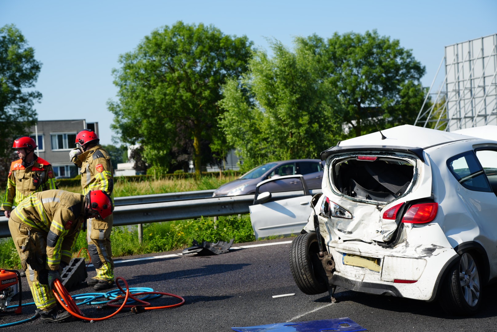 Bakwagen rijdt achterop auto: deur uit auto geknipt om bestuurder te bevrijden