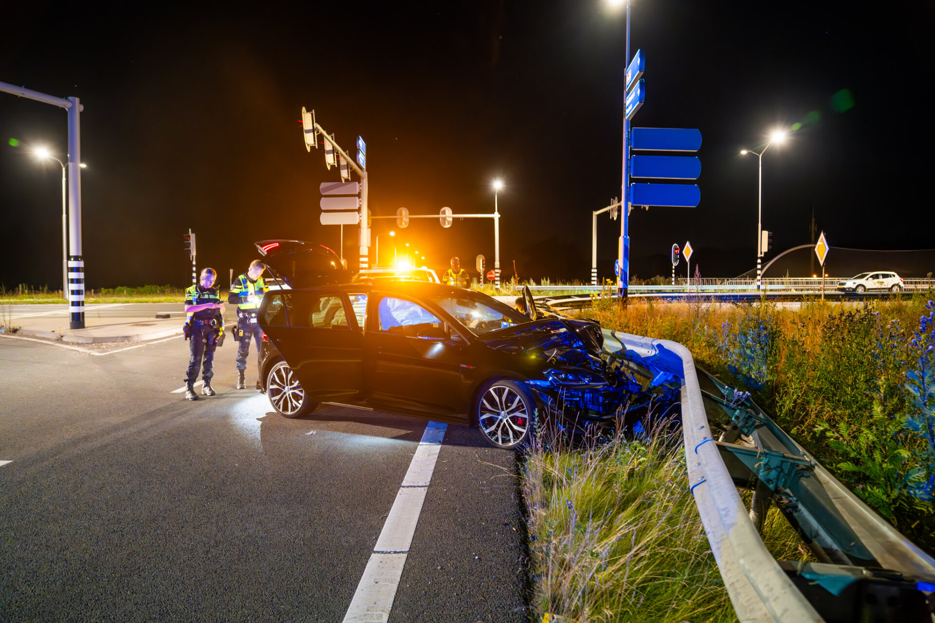 De man miste de bocht, mogelijk door hoge snelheid, gezien het bandenspoor op de weg en kwam tot stilstand tegen de vangrail
