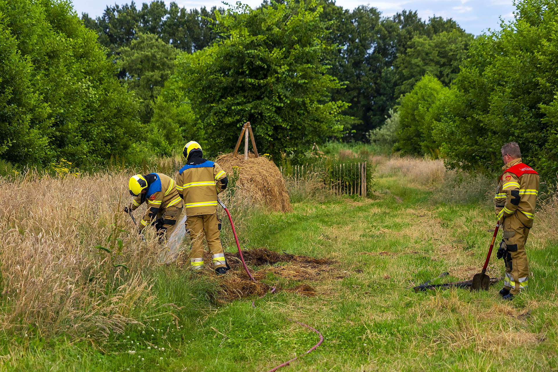 Het hooi is door de brandweerlieden uit elkaar getrokken en afgeblust. Daarna zijn ze teruggekeerd naar de kazerne.