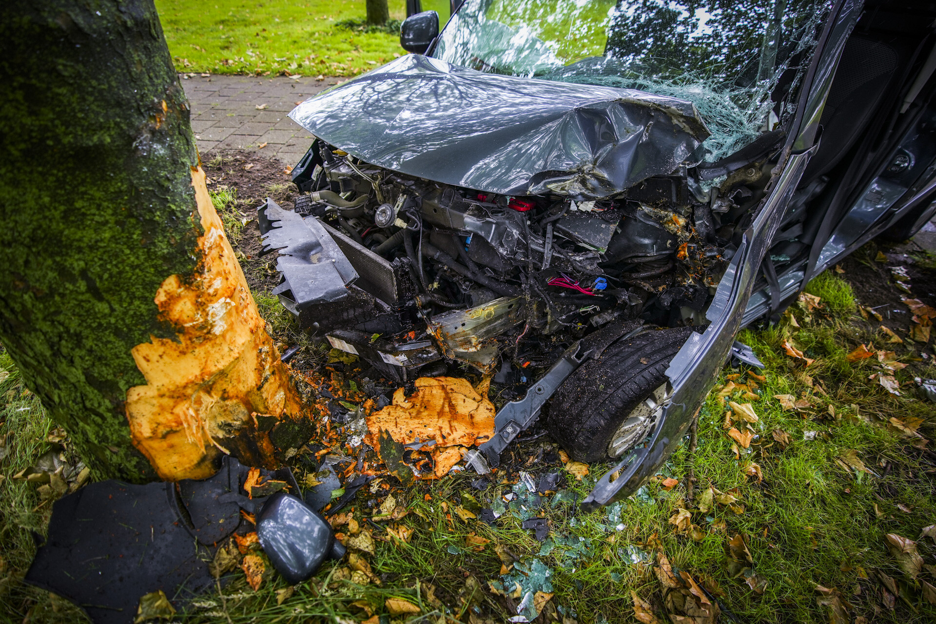 Bestuurder van bestelbus bekneld na botsing tegen boom