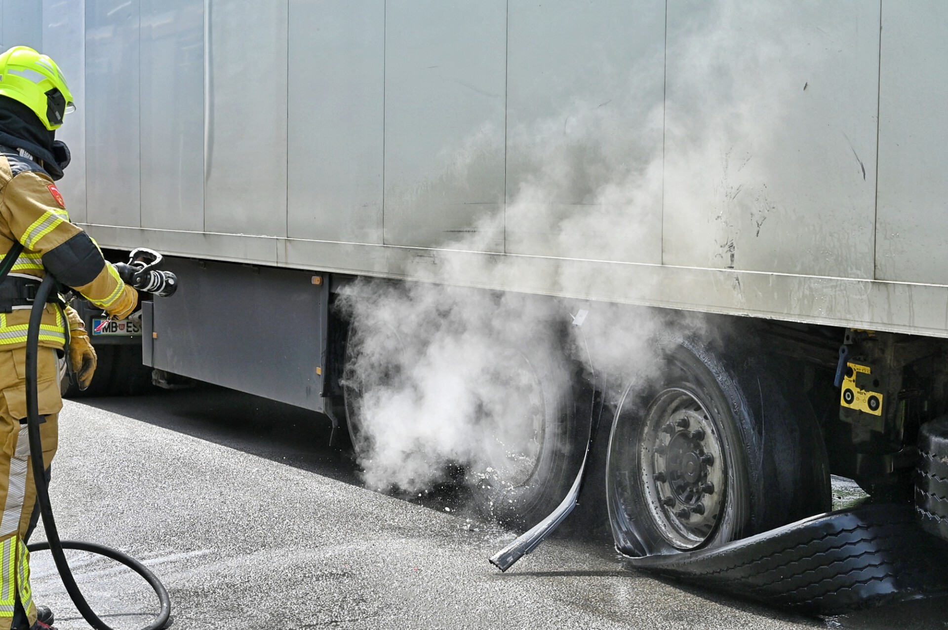 Twee brandweerwagens en politie gingen met spoed ter plaatse. De chauffeur had zelf als twee brandblussers leeg gespoten op de banden van de trailer. Een vast gelopen rem veroorzaakte de brand. Een van de banden smolt weg door de hitte.
