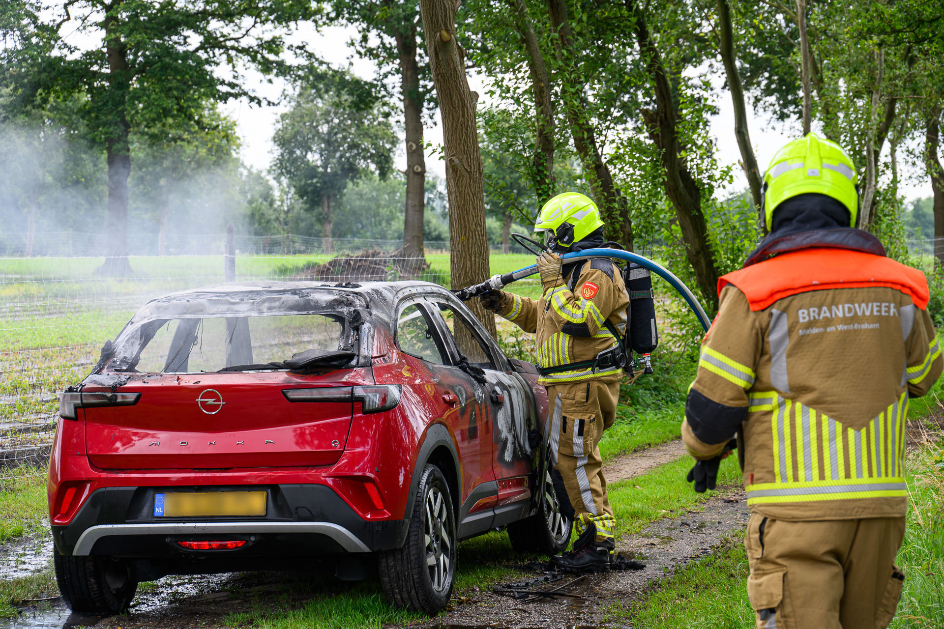 Het vuur is geblust door de toegesnelde brandweer. De oorzaak van de brand is nog onduidelijk. De auto zal worden getakeld door een bergingsbedrijf, die de auto in een speciale bak zal meenemen.