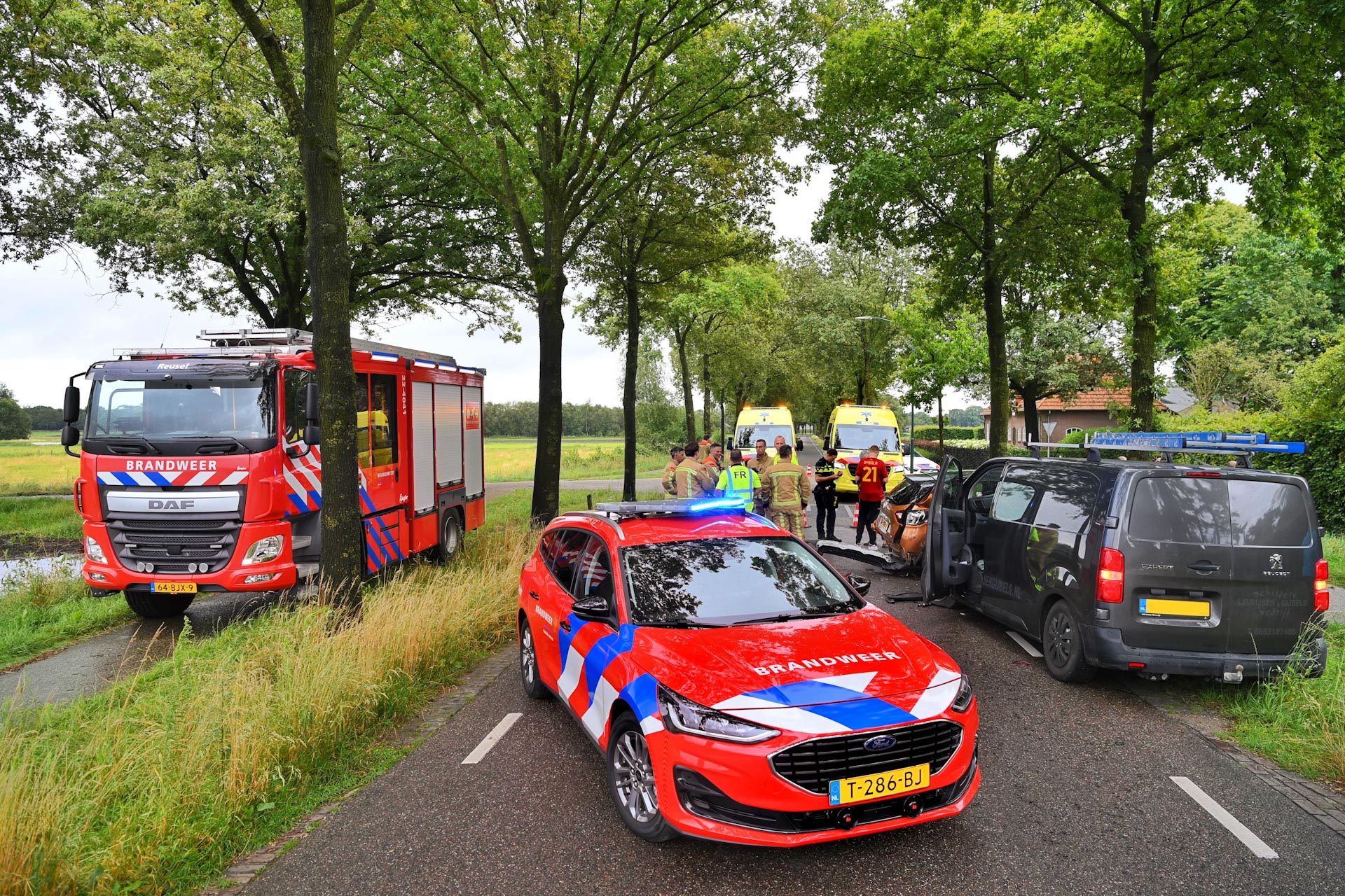 Beide slachtoffers bevonden zich in een personenauto die in de flank werd geraakt door een bestelbus. De brandweer van Reusel moest de inzittenden uit hun voertuig bevrijden, met assistentie van de brandweer Bladel en Eersel. Twee ambulances waren ter plaatse om de gewonden te behandelen en hen naar een ziekenhuis te vervoeren.