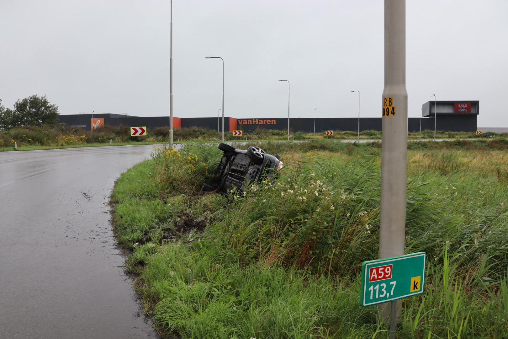 Geplaatst op 13 juli 2024, om 11:07 uurWAALWIJK – Zaterdagochtend is op de verbindingsweg A59 naar de Midden Brabantweg in Waalwijk een auto op zijn kant terecht gekomen.