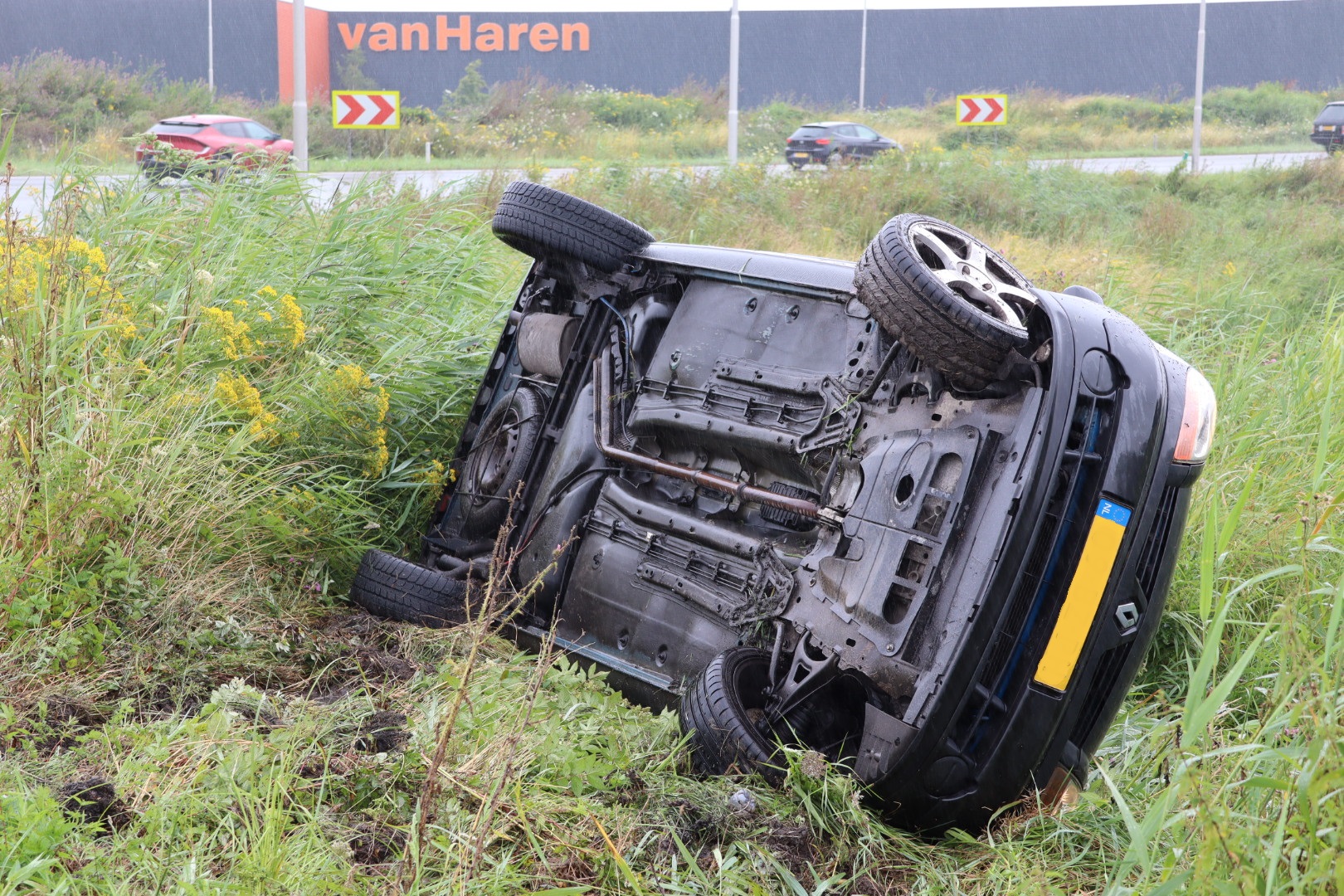 Auto belandt op z’n kant bij eenzijdig ongeval