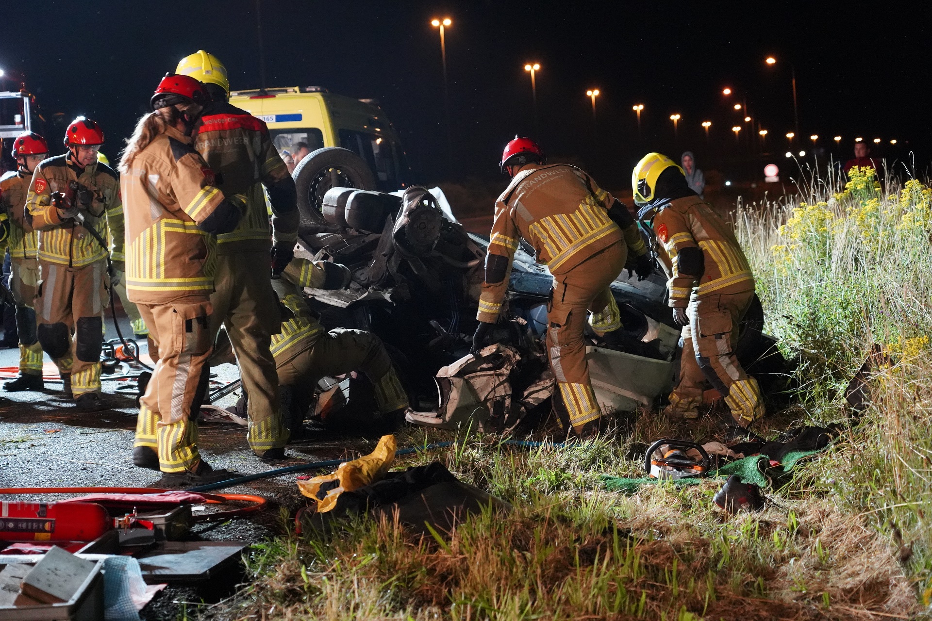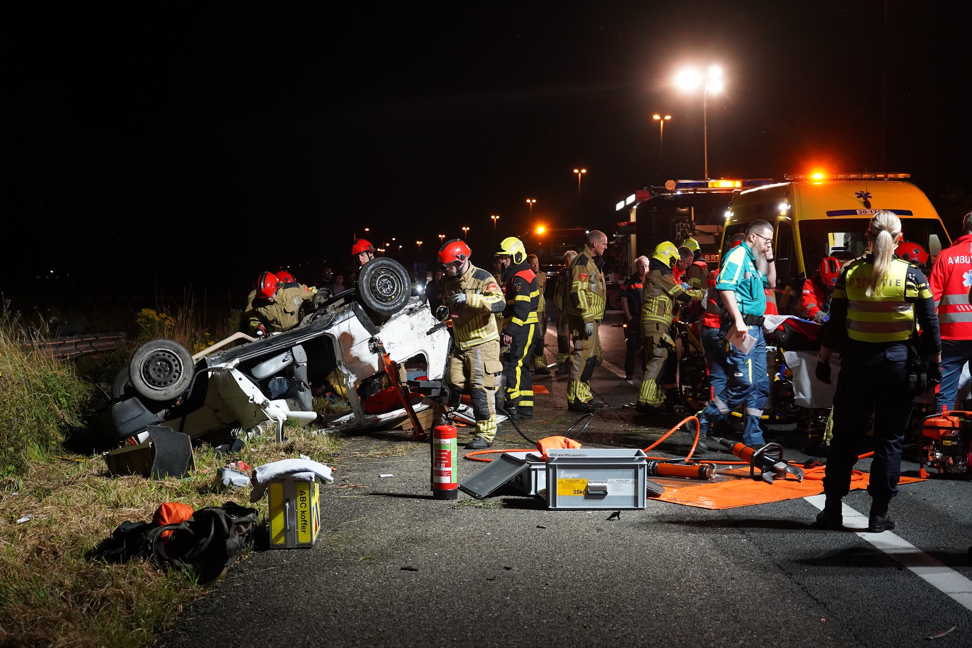Twee auto’s kwamen met elkaar in botsing, waarbij één van de auto’s van achteren werd aangereden, tegen de vangrail botste en uiteindelijk op zijn kop tot stilstand kwam. Drie inzittenden van deze auto zaten bekneld en moesten door de brandweer uit het wrak worden bevrijd. De bestuurder van de andere auto werd ter plaatse onderzocht en daarna aangehouden als verdachte, aldus een agent.