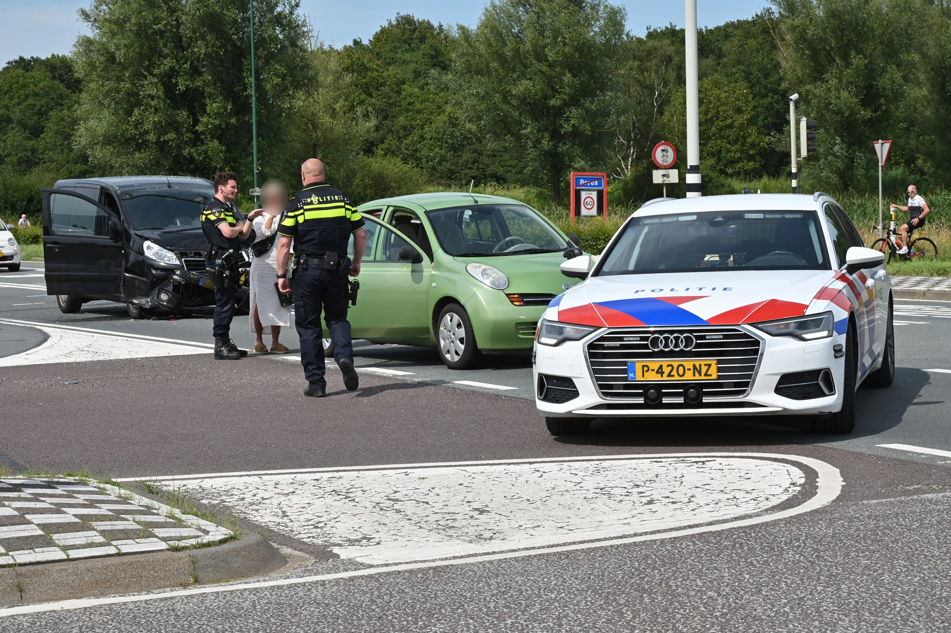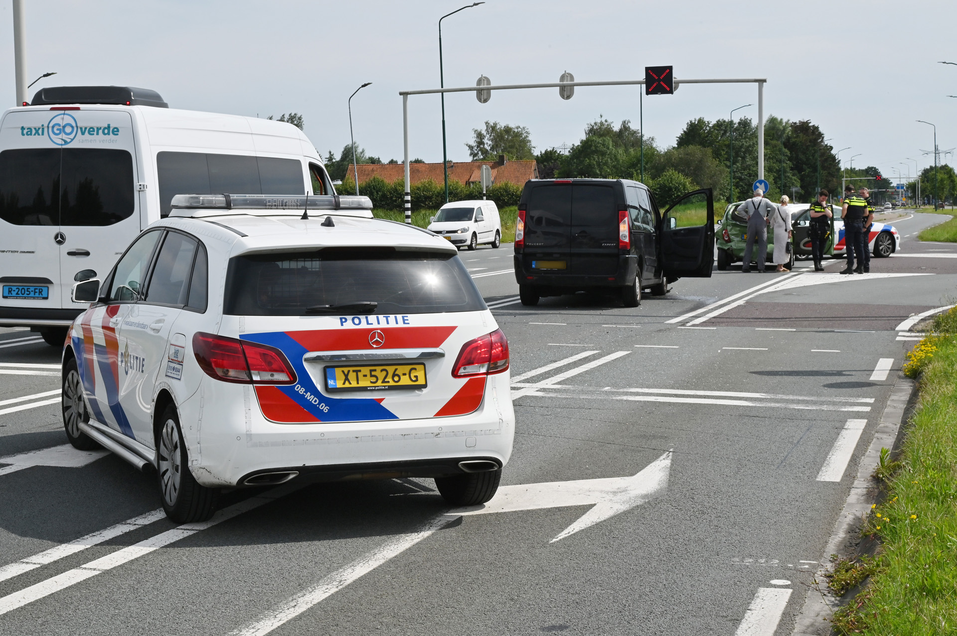 Het kruispunt was gedeeltelijk afgezet voor het overig verkeer.