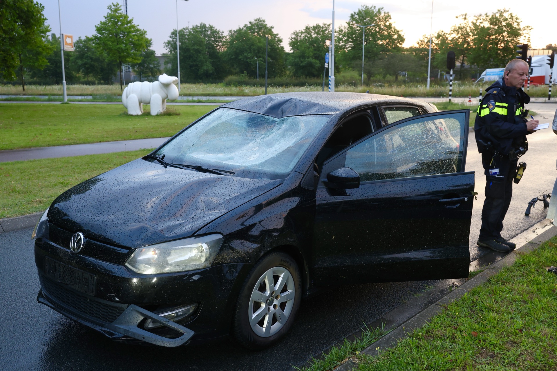 Vanaf daar is de trauma-arts aan boord van de ambulance gekomen. De automobilist bleef ongedeerd. De Willen de Zwijgerweg is voorlopig dicht tussen de Oude Rijksweg en de Hinkelbrits, de politie gaat onderzoek doen en wil alles in beeld brengen.