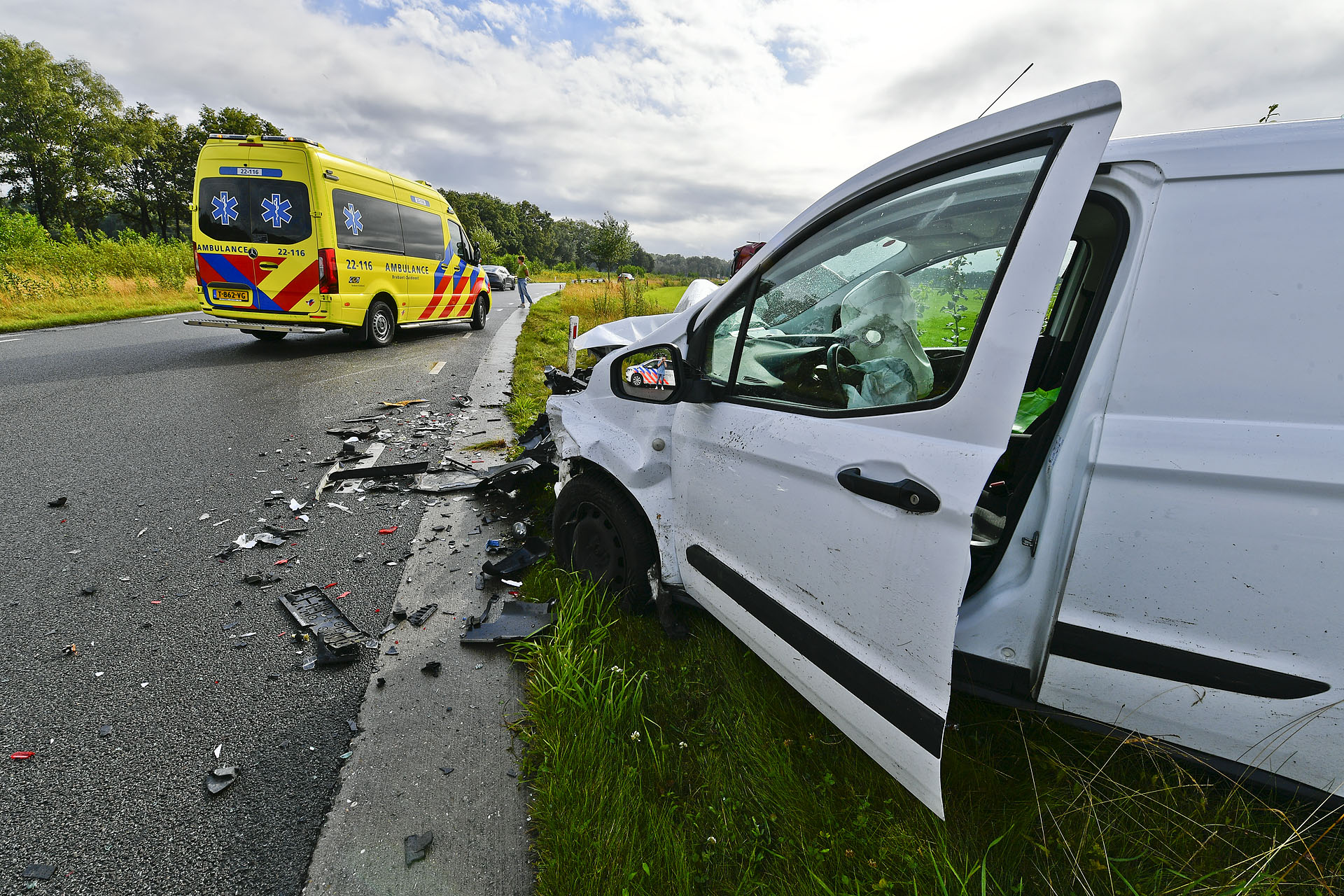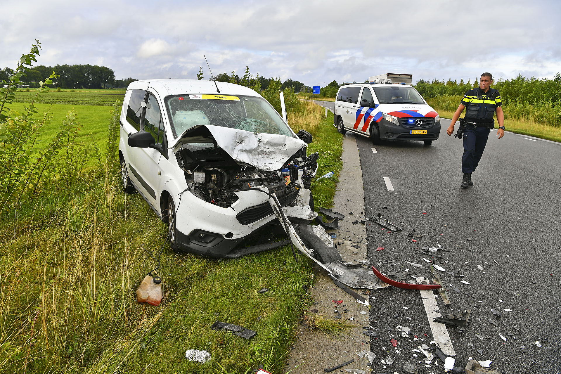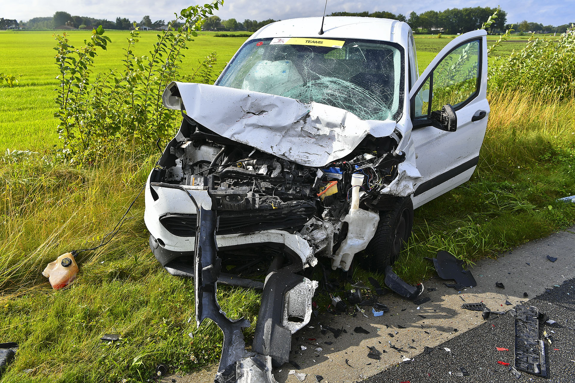 De botsing veroorzaakte een enorme ravage: een van de auto’s belandde in de sloot en brokstukken lagen verspreid over de weg. Beide inzittenden zijn met de ambulance naar het ziekenhuis gebracht. De voertuigen moesten worden weggesleept.