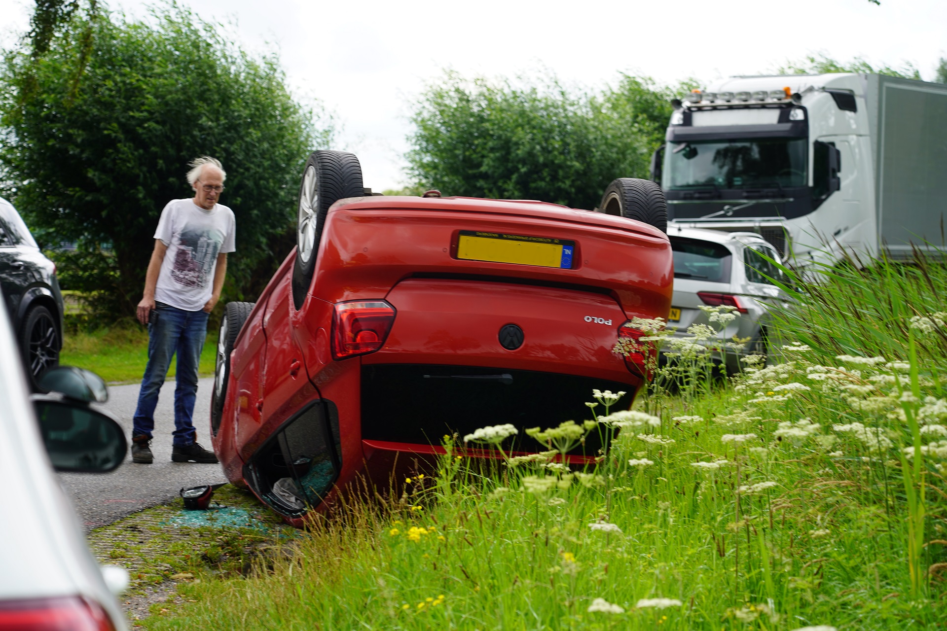 Een auto die de Wildestraat in reed raakte hierbij het voorwiel van een tegemoetkomende auto waarna zijn voertuig op z’n kop belande. De brand raakte lichtgewond en werd in een ambulance nagekeken.
