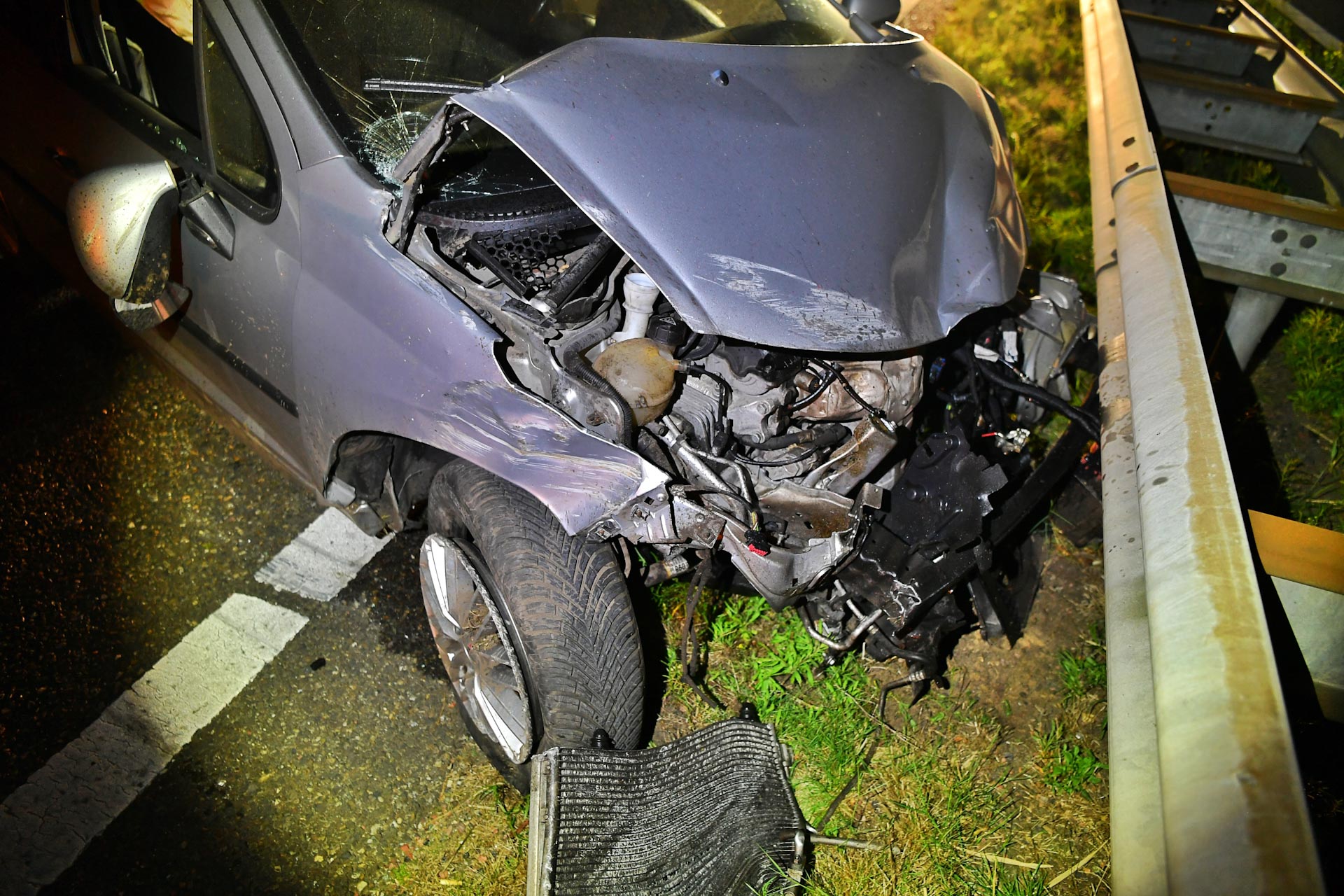 Een auto met een vermoedelijke klapband belandde in de linker vangrail en werd daarna aangereden door achterop komend verkeer. De weg is afgesloten voor alle verkeer. De brandweer veegde met man en macht het wegdek schoon. Eén inzittende is met lichte verwondingen nagekeken in de ambulance.