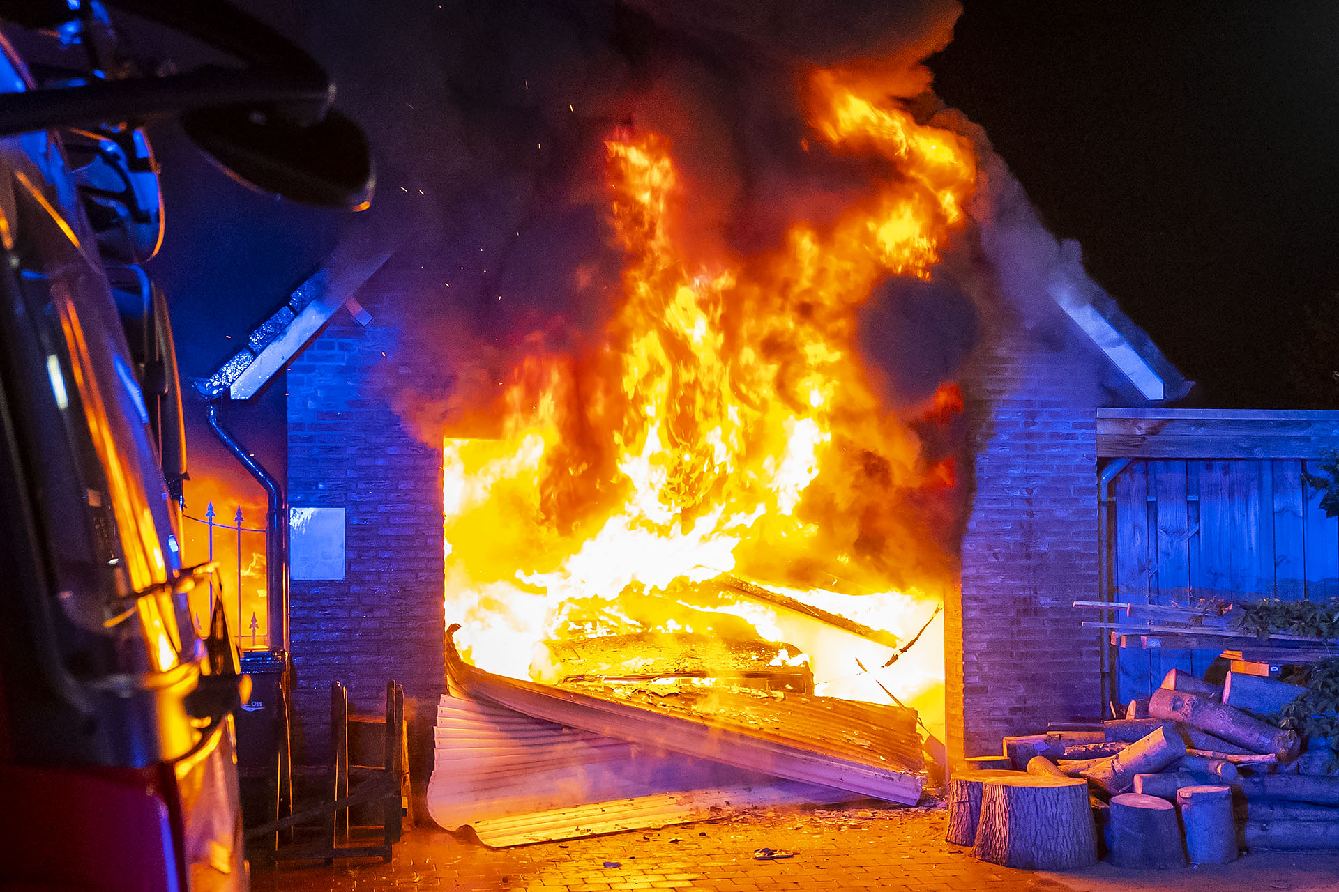 Rond 2.10 uur ontdekten buren een brand in een grote garage naast een woning aan Den Bogert en belden 112. De brandweer rukte met groot materieel uit en voorkwam dat het vuur oversloeg naar de woning. De bewoner, die terug naar binnen wilde om cavia’s te redden, werd door de brandweer tegengehouden.