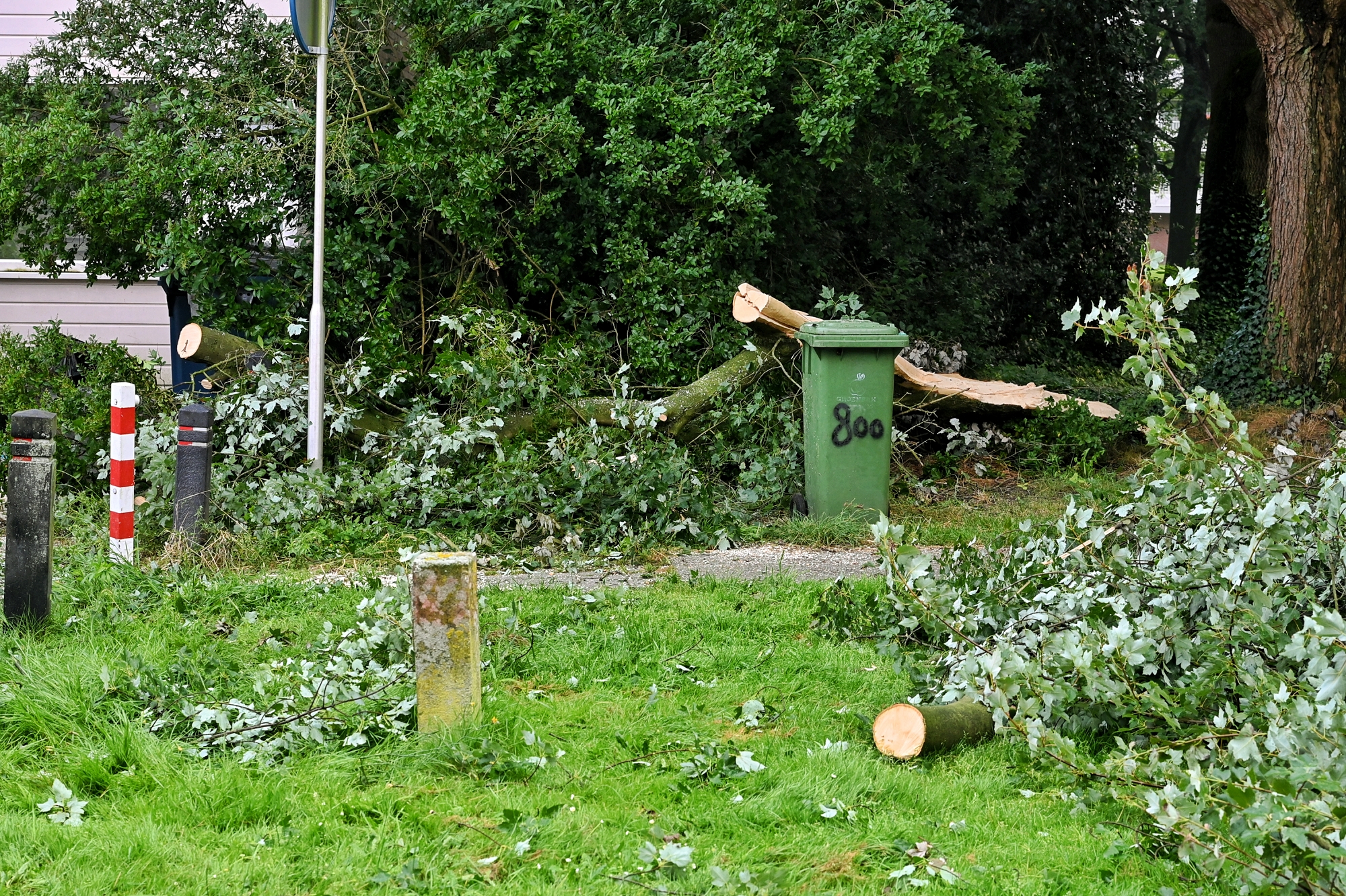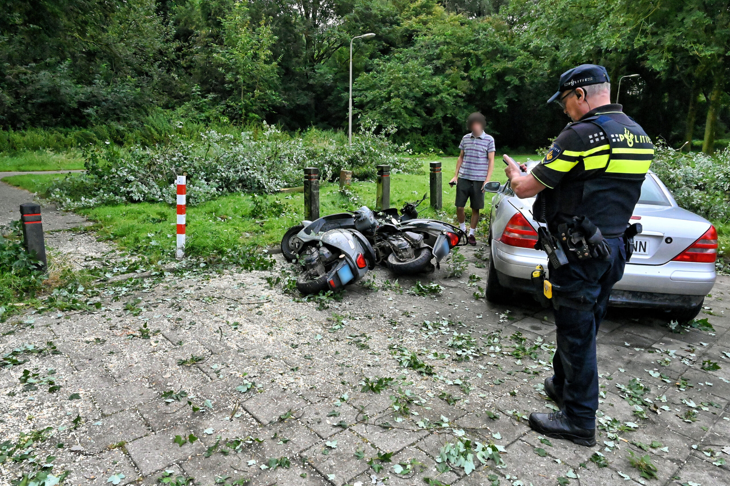Voordat de brandweer werd ingeschakeld, probeerden buurtbewoners zelf het hout te verwijderen, maar dit bleek onmogelijk. De brandweer kwam ter plaatse om te assisteren. De auto en de scooters zijn flink beschadigd. De politie heeft de gedupeerden aan de deur geïnformeerd. Eén van de gedupeerden meldde dat hij rond 06:00 uur thuiskwam van zijn werk en toen lag het boomdeel al op de voertuigen.