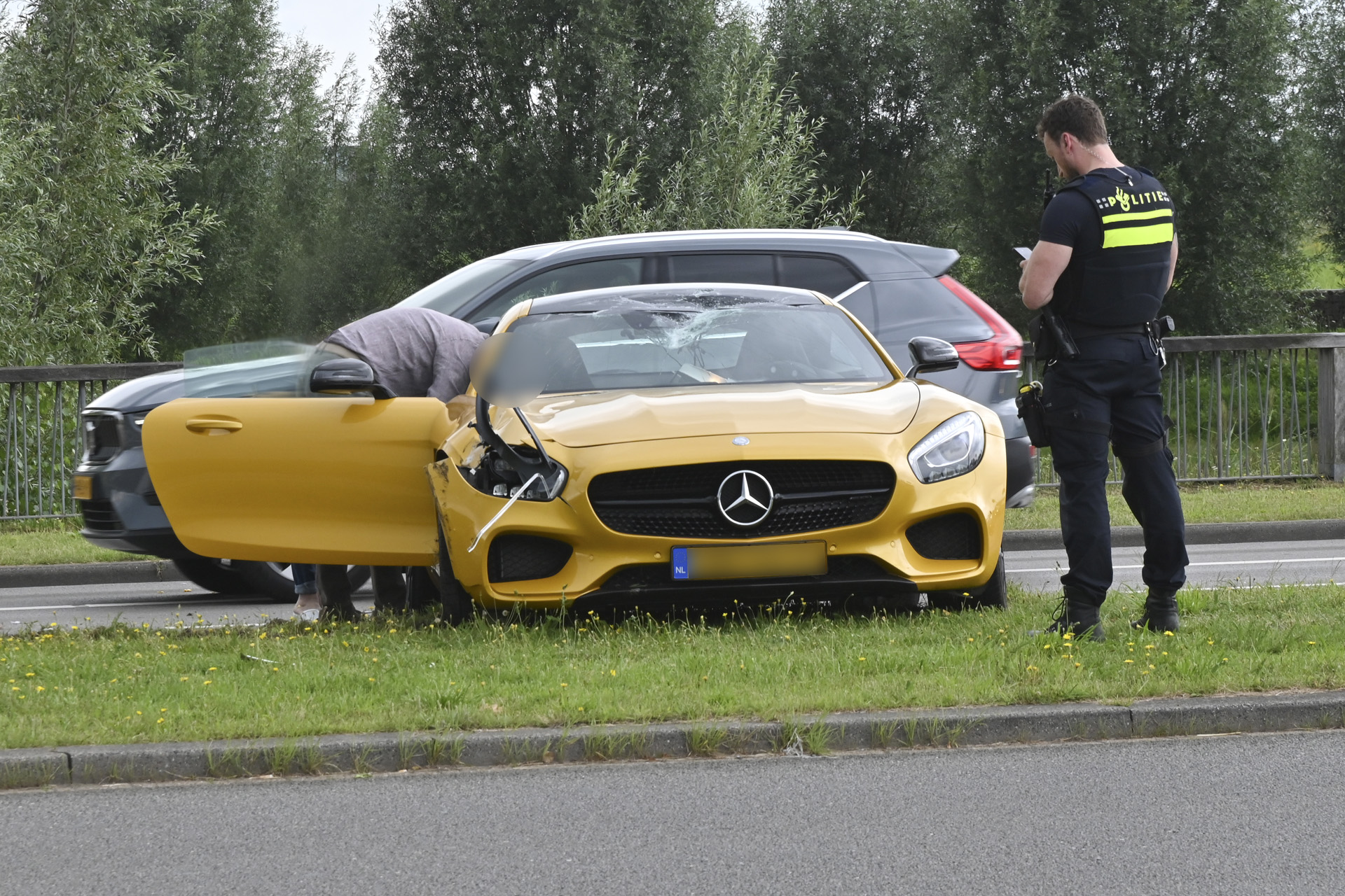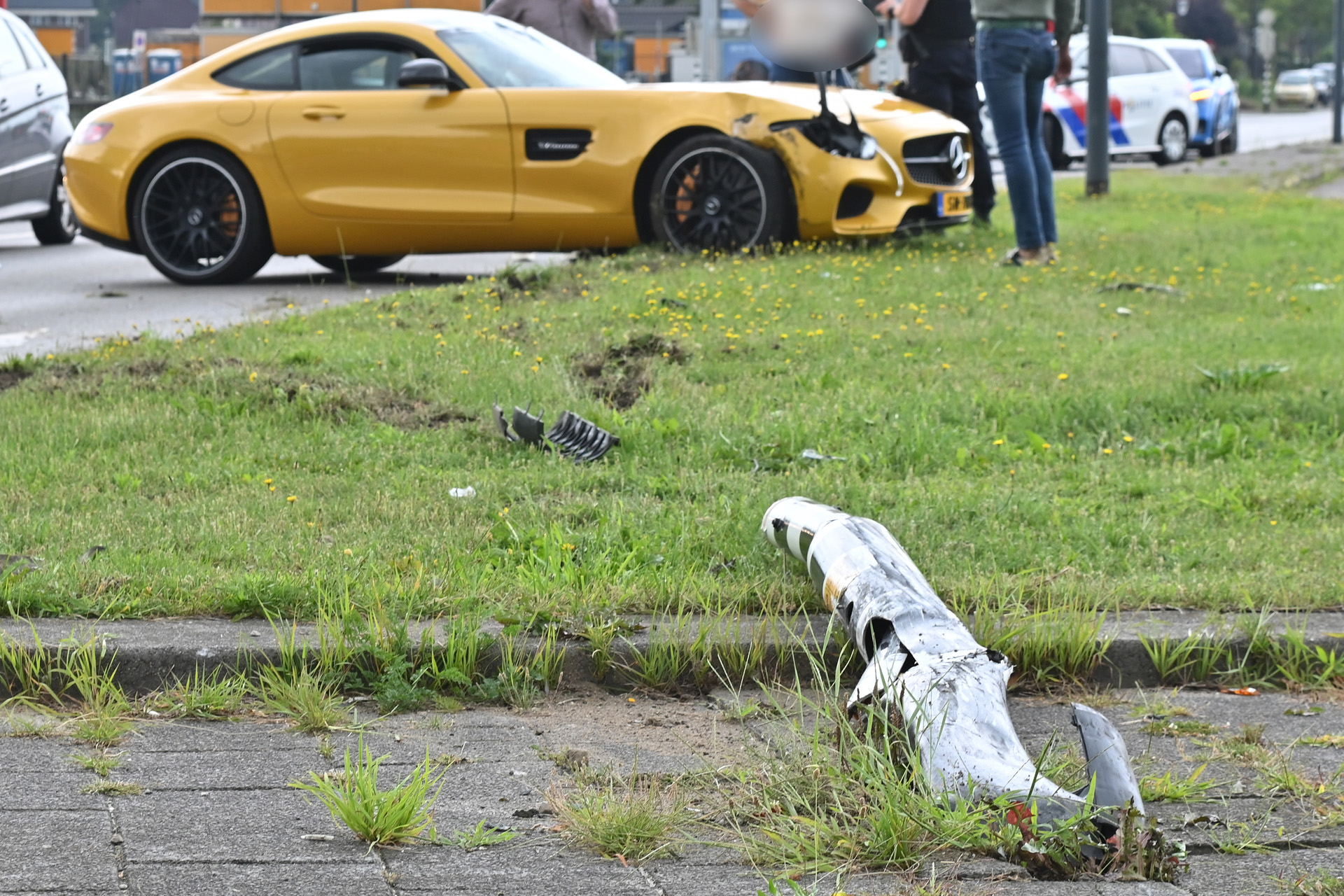De auto raakte hierbij beschadigt en het verkeerslicht lag op de weg. Er raakte niemand gewond. Hoe het een en ander kon gebeuren is niet duidelijk.