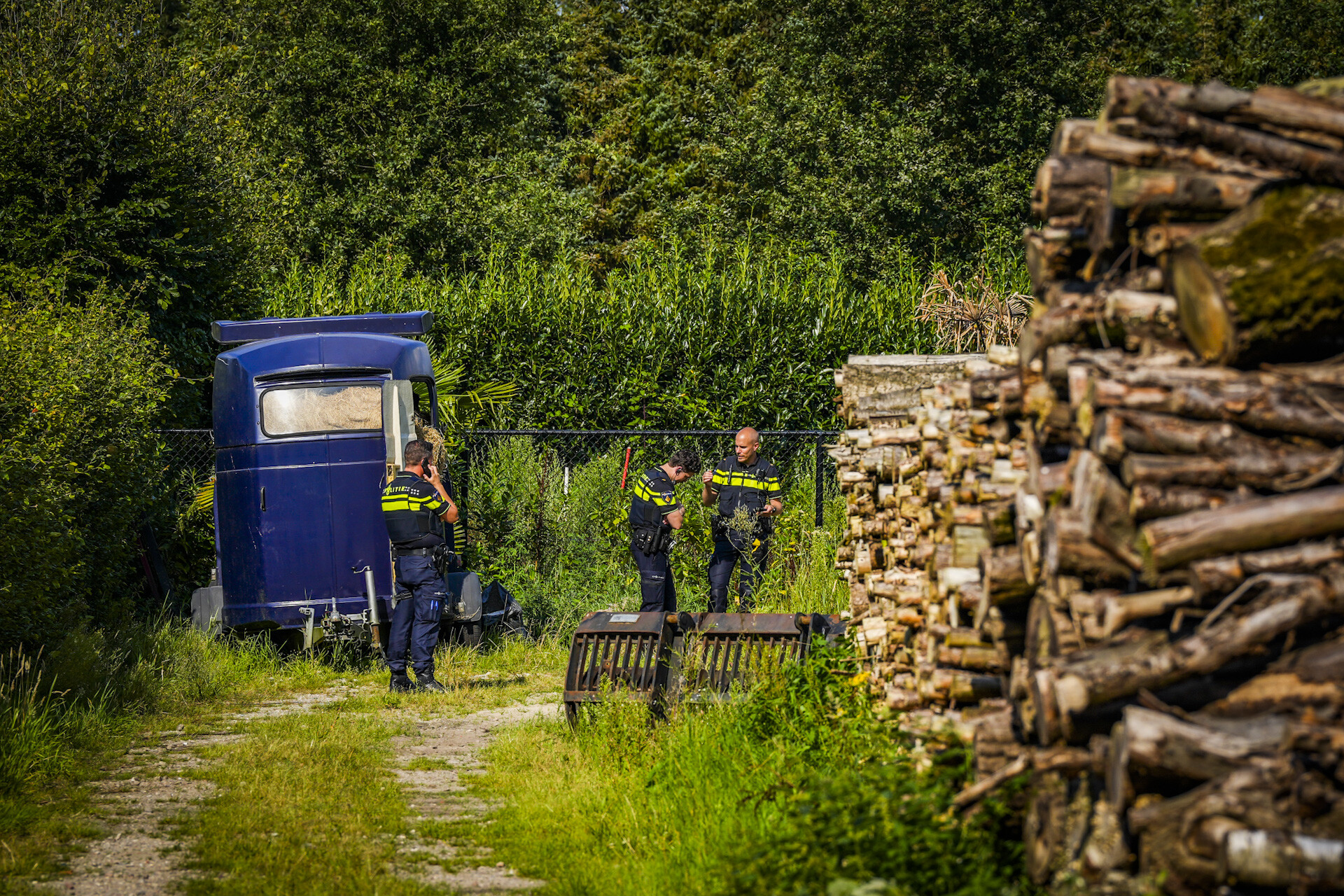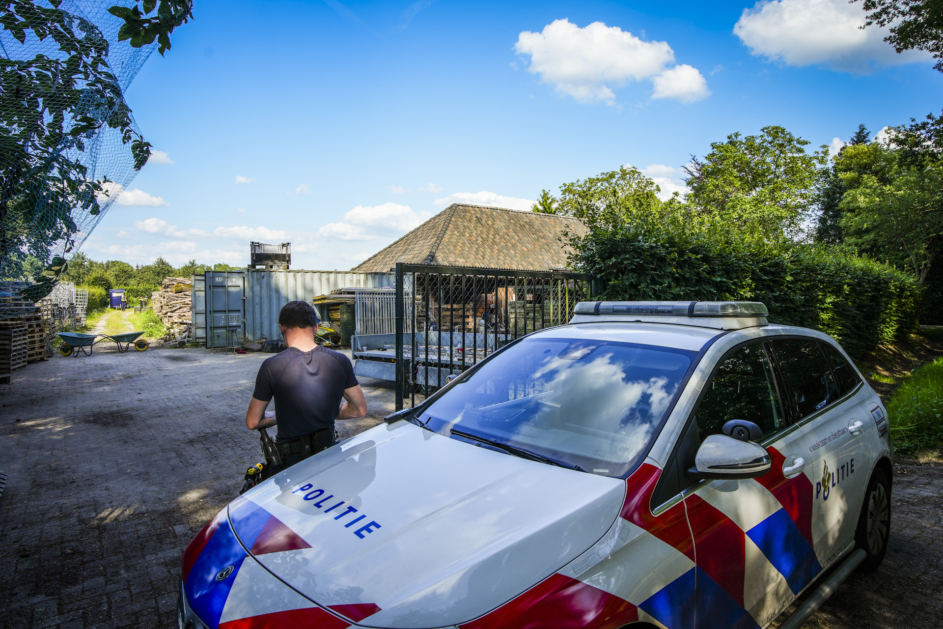 De politie doorzoekt niet alleen de schuur, maar ook het omliggende terrein, met bijzondere aandacht voor het gebied achter de schuur. Daarnaast is de politie binnengevallen bij de woning van de eigenaar van de schuur.