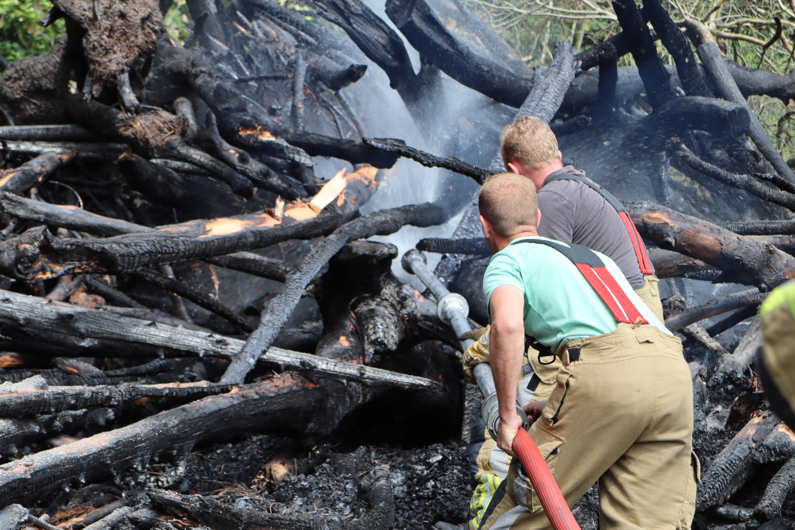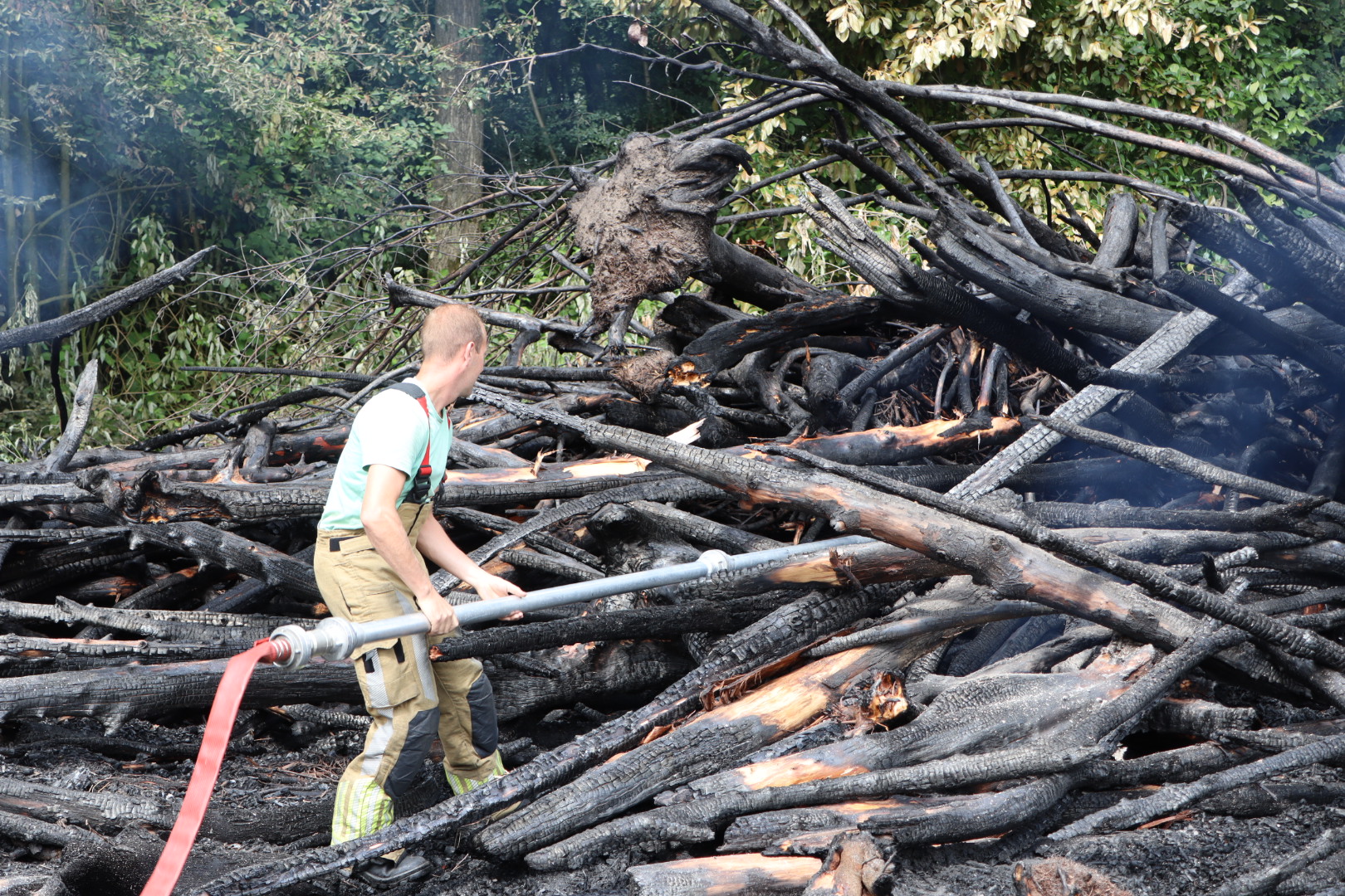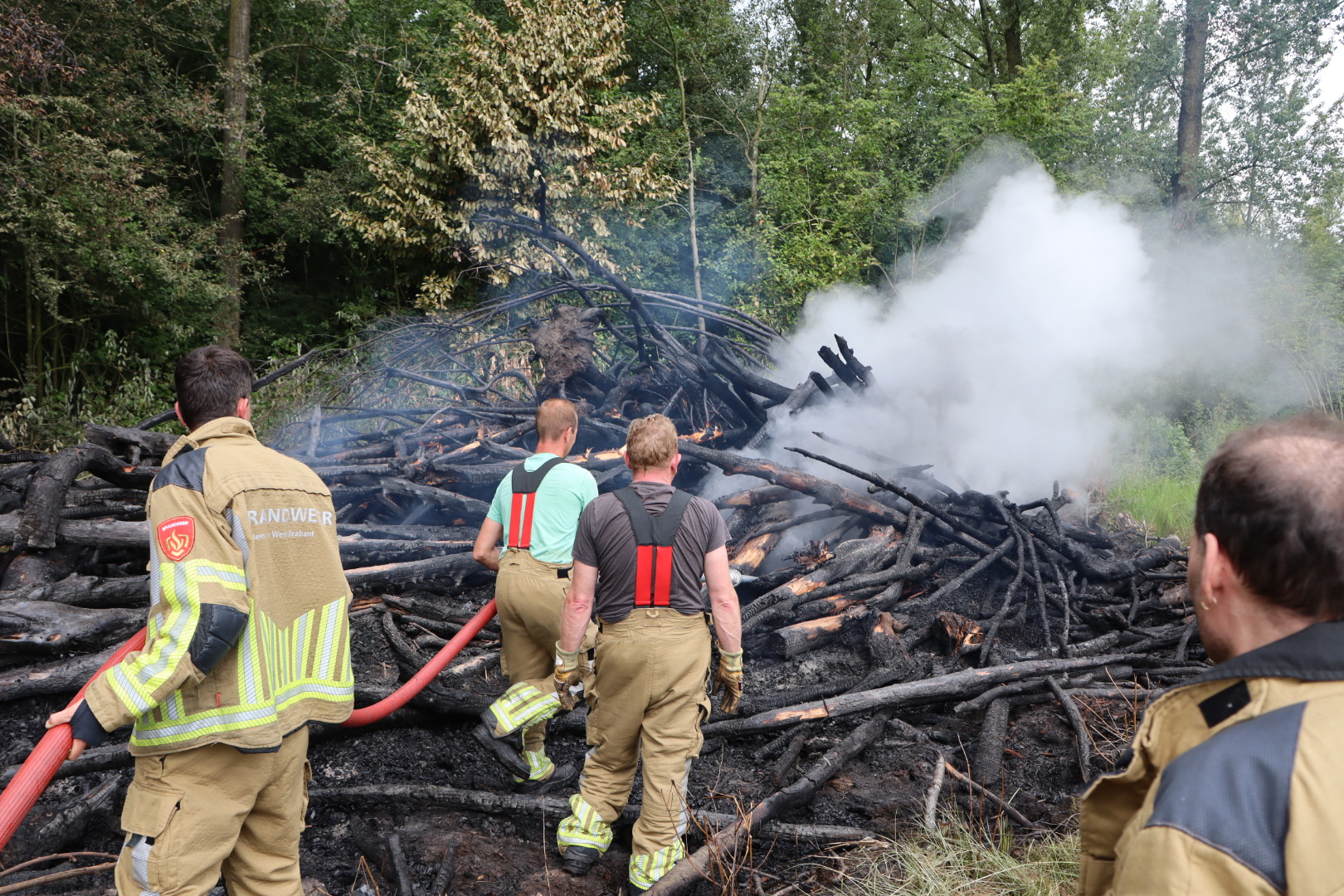 Woensdagmiddag laaide de brand echter weer op. De brandweer moest opnieuw uitrukken omdat de berg takken nog steeds heet was en bleef smeulen. De berg hout zal op een later moment worden verwijderd.
