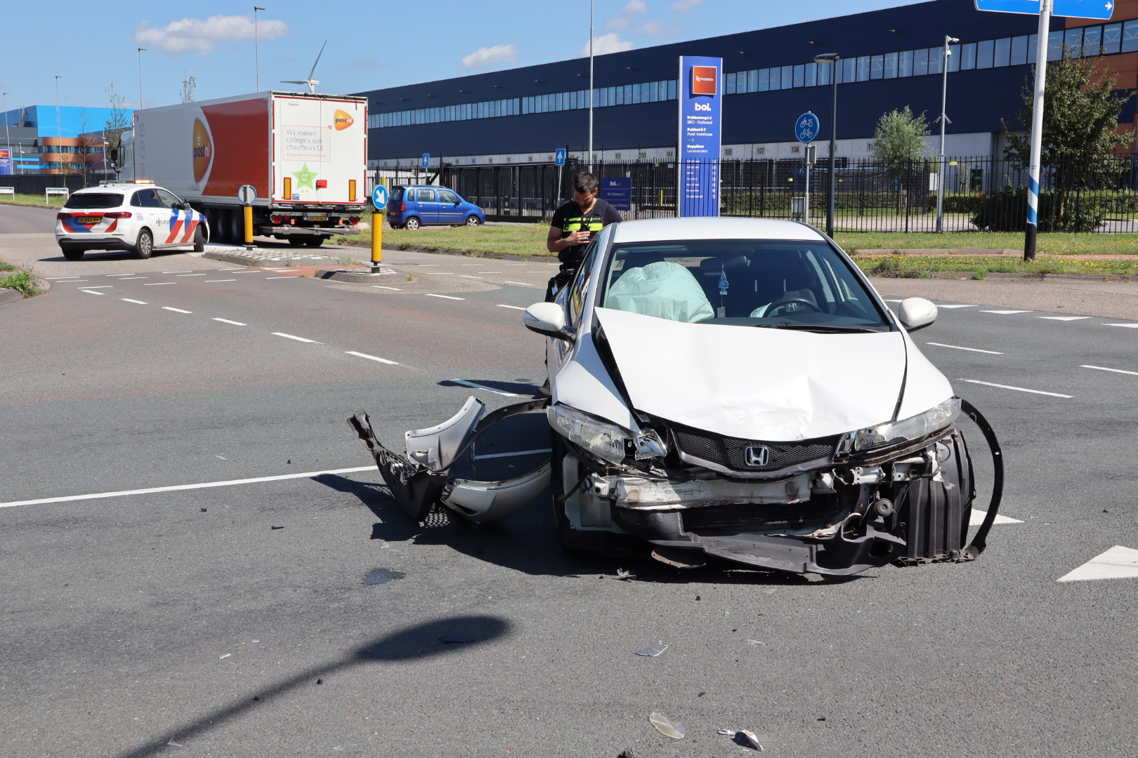 Wel is er veel schade aan beide auto’s. De politie probeerde nog een auto naar de kant te duwen om de kruising vrij te krijgen. Dit is het tweede ongeval in twee dagen.