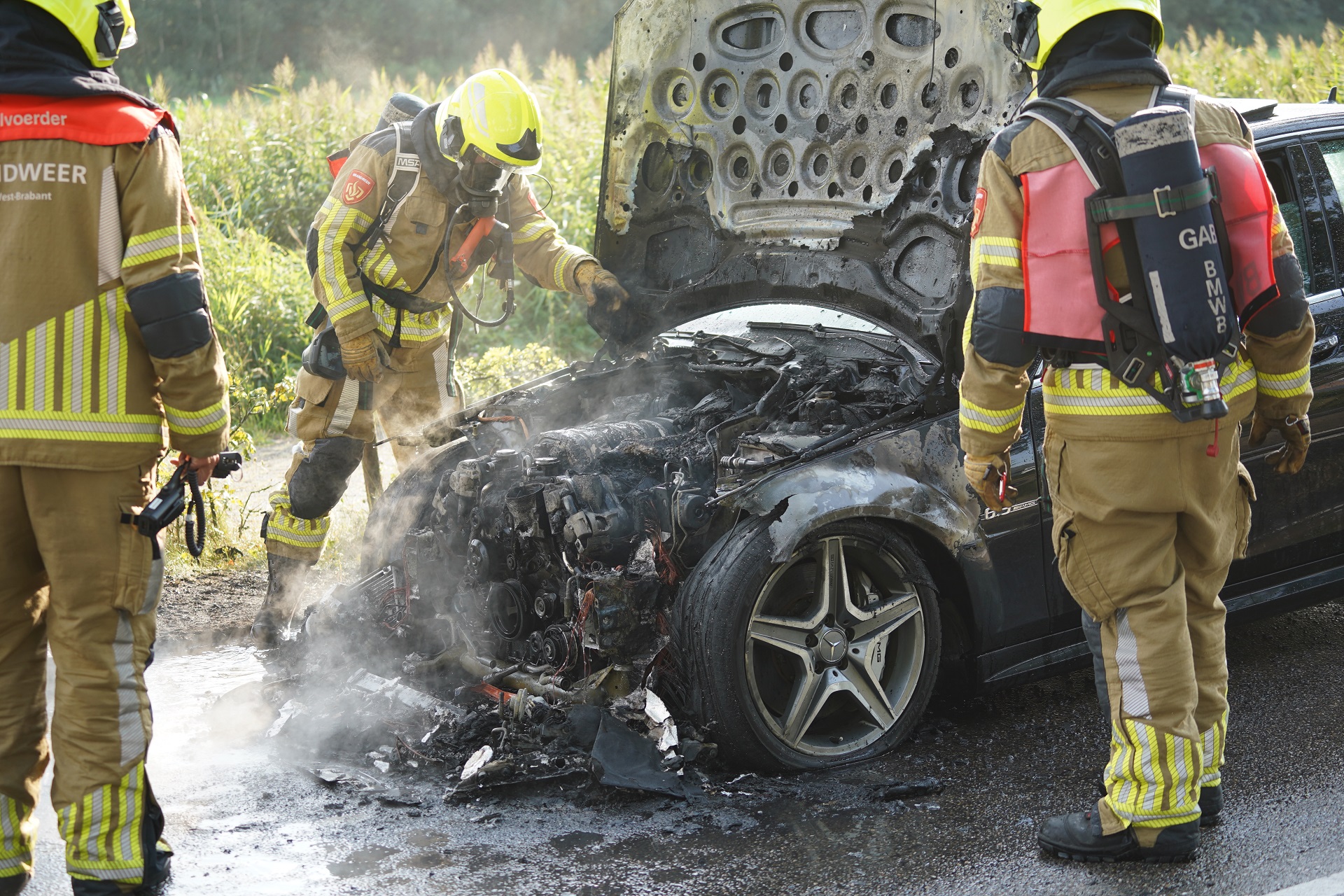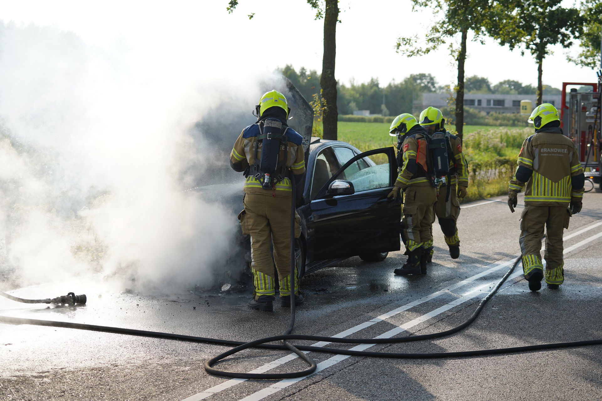De auto vloog tijdens het rijden in brand. De brandweer kon niet voorkomen dat de auto grotendeels uitbrandde. De bestuurder raakte niet gewond.