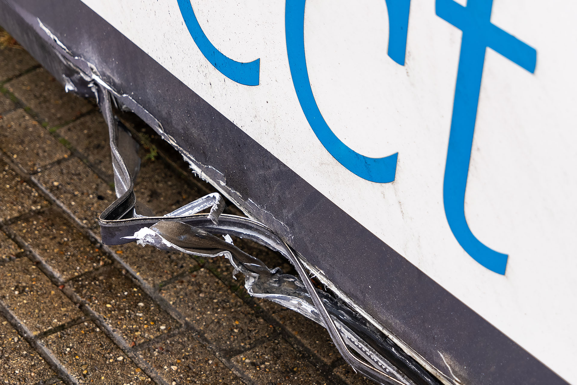 Dat gebeurde toen de chauffeuse de bus vanaf het busstation linksaf de Molenstraat op stuurde. Daarbij nam ze bocht kennelijk te krap. Volgens een politieagent zou één van beide sporen korte tijd zijn geblokkeerd maar wist de buschauffeuse de bus al snel los te trekken door gas te geven. Daarbij ontstond wel schade aan de linkerzijkant van de bus.