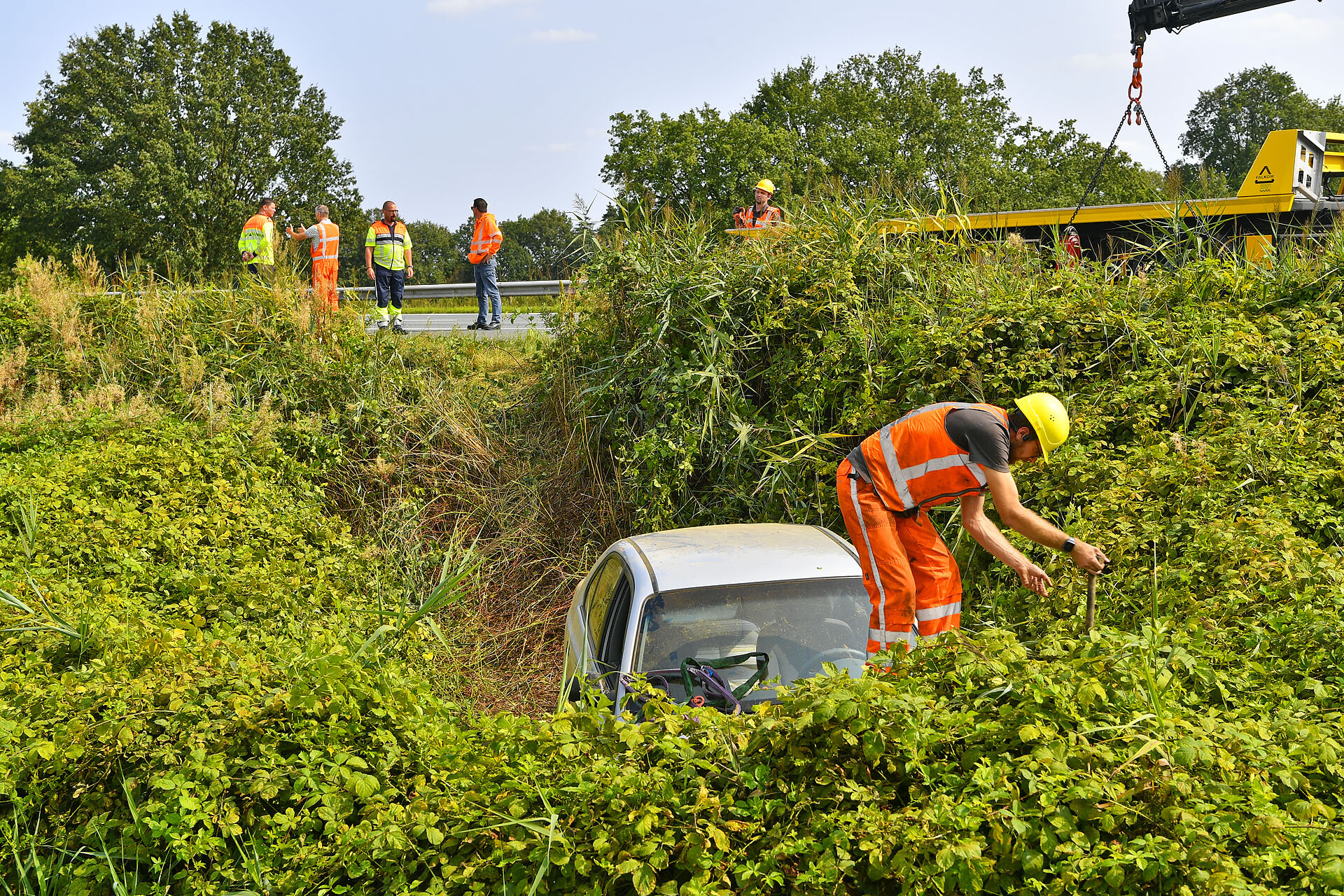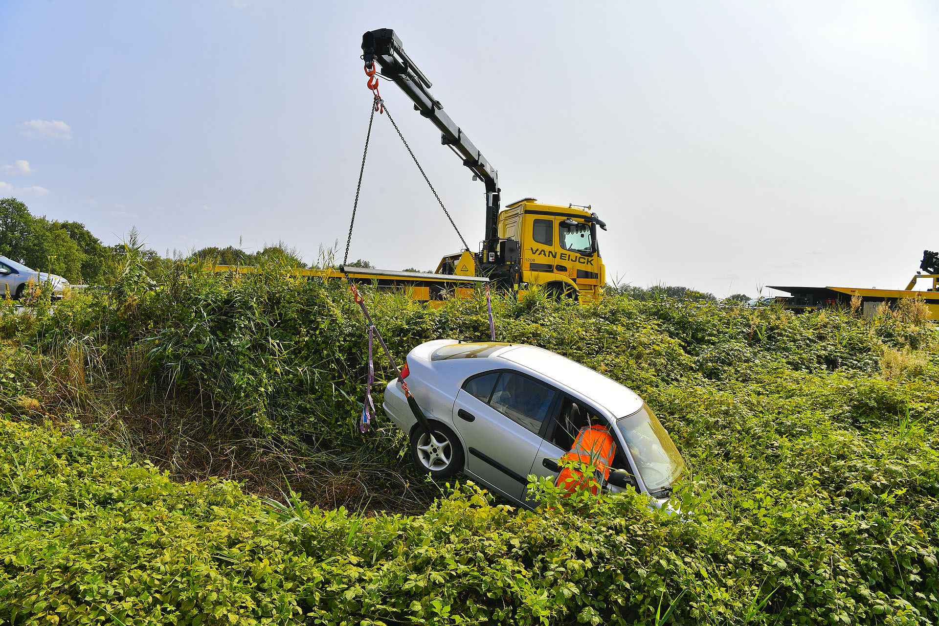 Eén van de auto’s belandde daarbij in de berm, die overwoekerd is met bramenstruiken, waardoor de hulpdiensten moeite hadden om bij het voertuig te komen. Het ongeval gebeurde in de richting van Eindhoven naar Eersel.