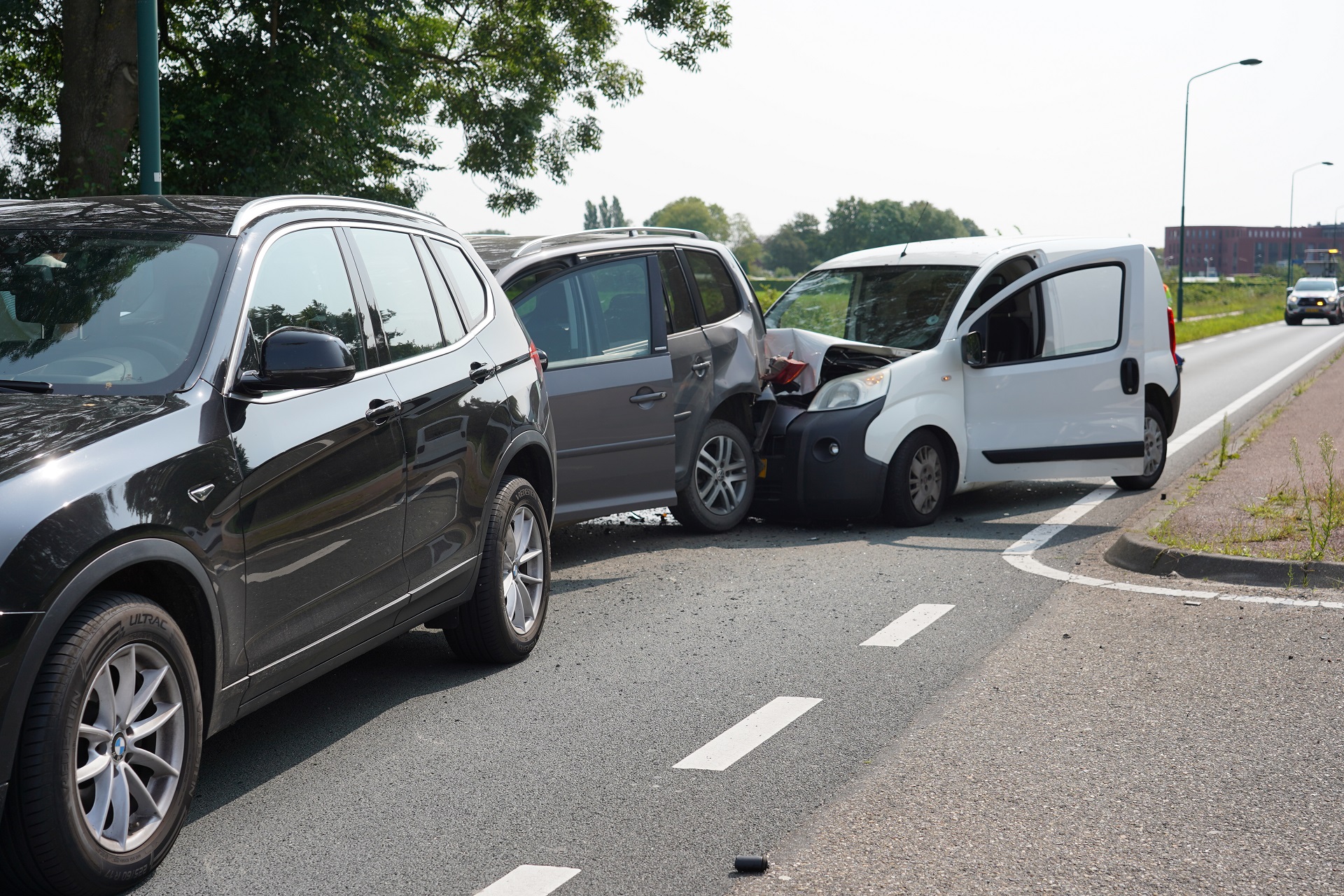 Door de botsing lekte er veel olie op de weg, waardoor het opruimen nog enige tijd kan duren.