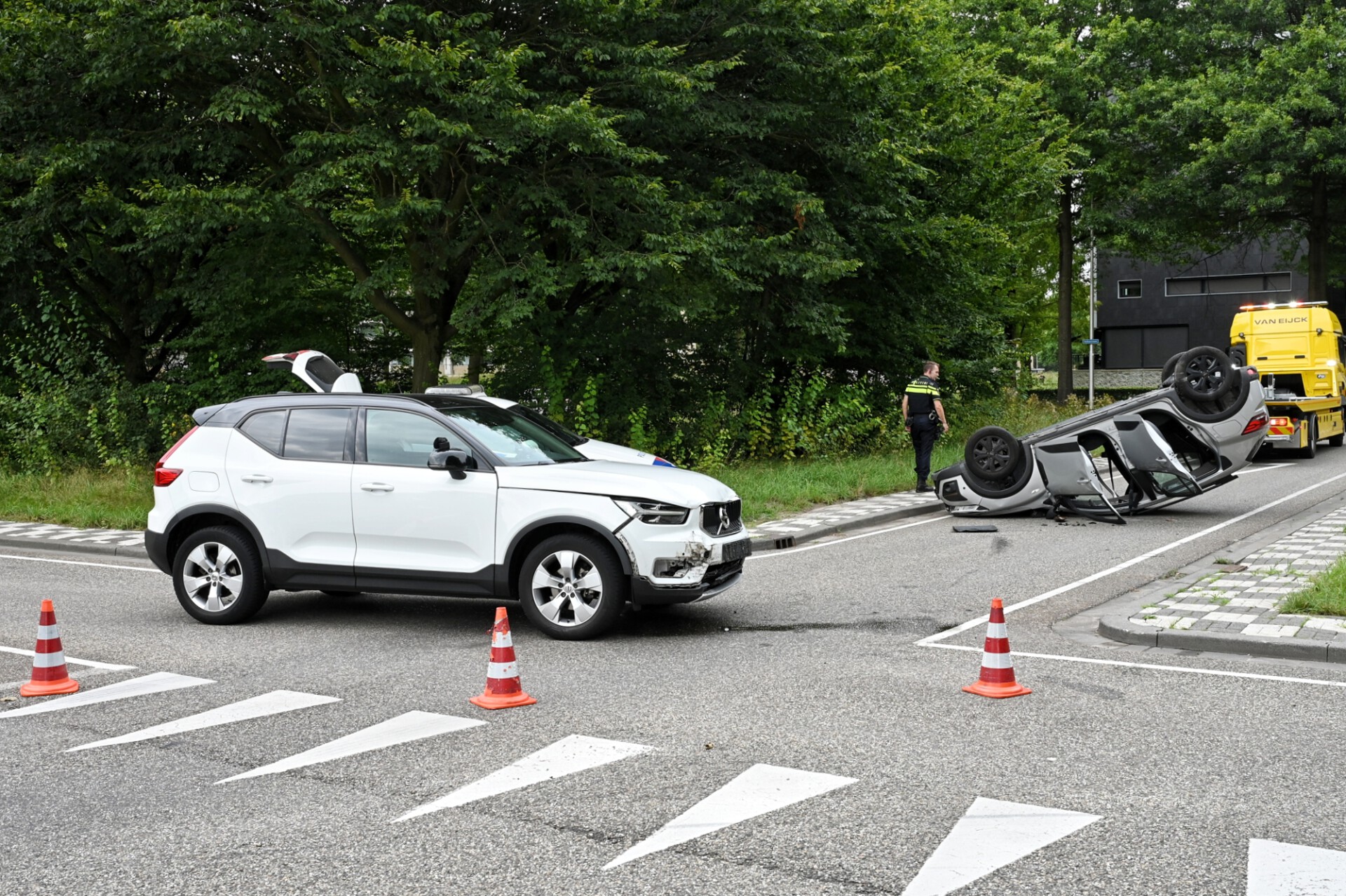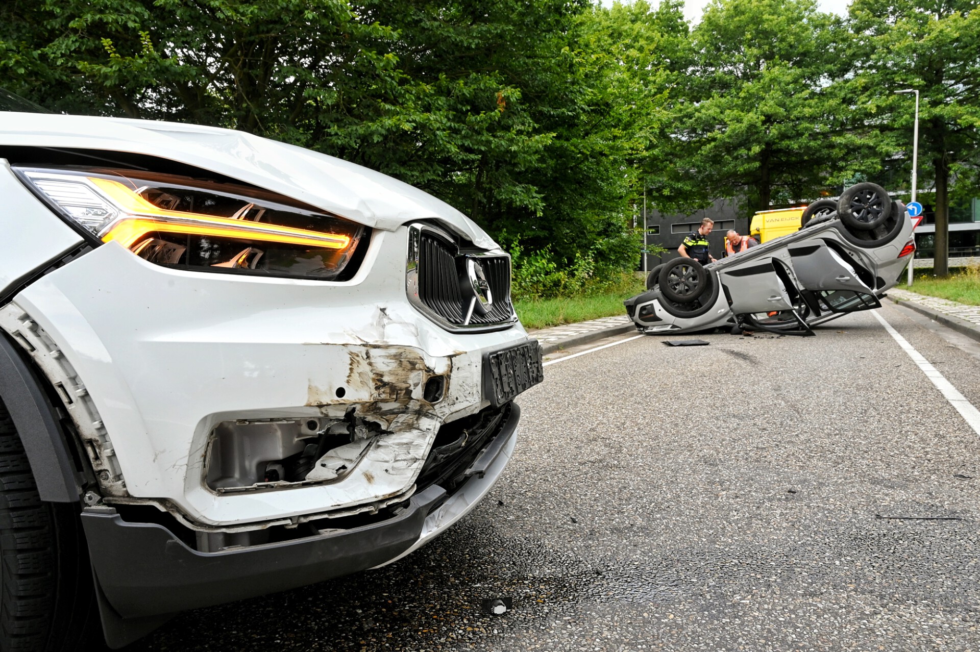 Een lesauto met een leerling en een personenauto botsten op elkaar. Door de klap sloeg de personenauto met twee inzittenden over de kop. Eén van de inzittenden raakte ernstig gewond aan arm en hand en is met spoed naar het ziekenhuis gebracht, terwijl de andere inzittende ook naar het ziekenhuis werd vervoerd.