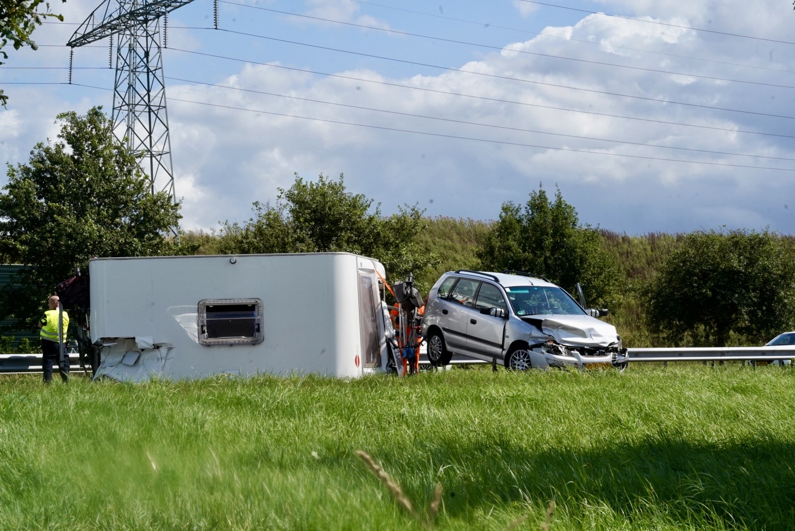 Bij aankomst bleek het echter te gaan om een ongeval waarbij een auto met caravan betrokken was. De caravan was op zijn zijkant terechtgekomen en de auto liep aanzienlijke schade aan de voorzijde op. Ook de caravan raakte zwaar beschadigd. Het ongeval leidde snel tot een file, met een vertraging van meer dan 30 minuten in beide richtingen.