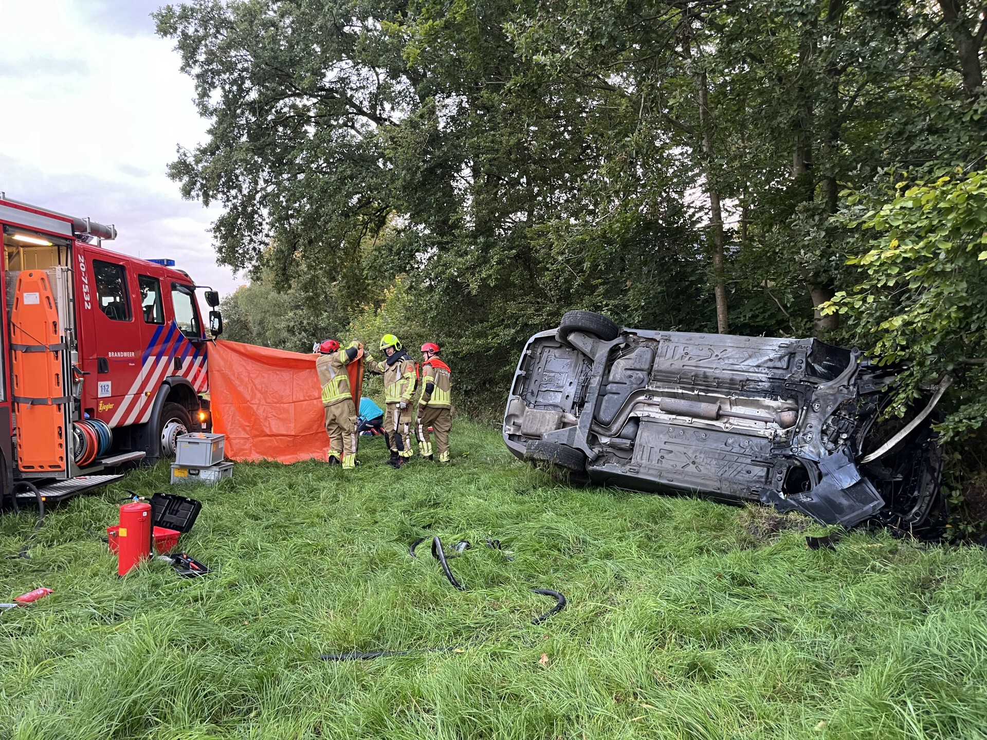 De brandweer en ambulance kwamen ter plaatse. Ook een traumahelikopter landde. Het slachtoffer is per ambulance naar het ziekenhuis gebracht.