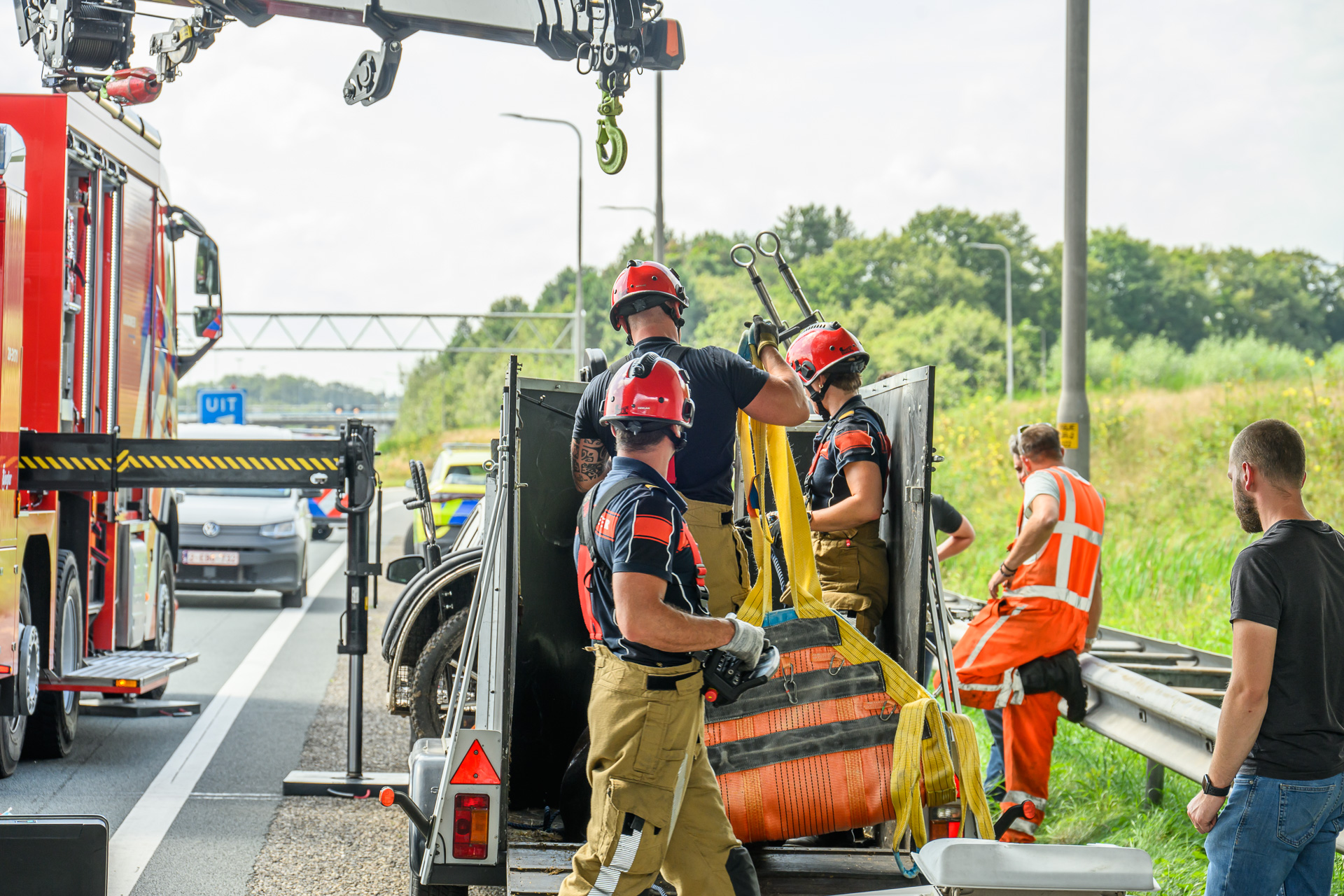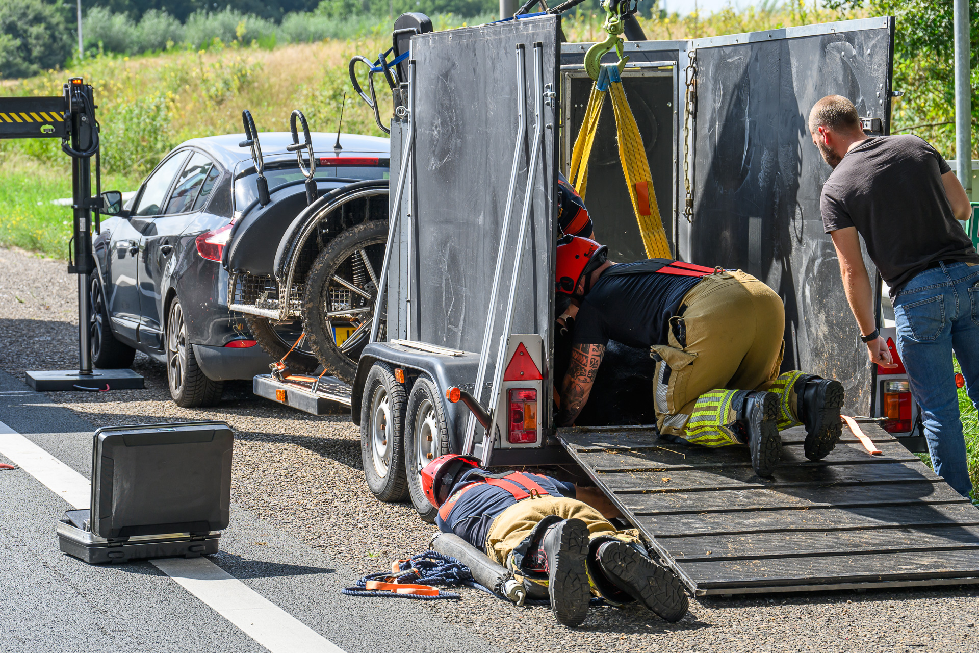 Paard zakt door trailer op snelweg, dier uit lijden verlost