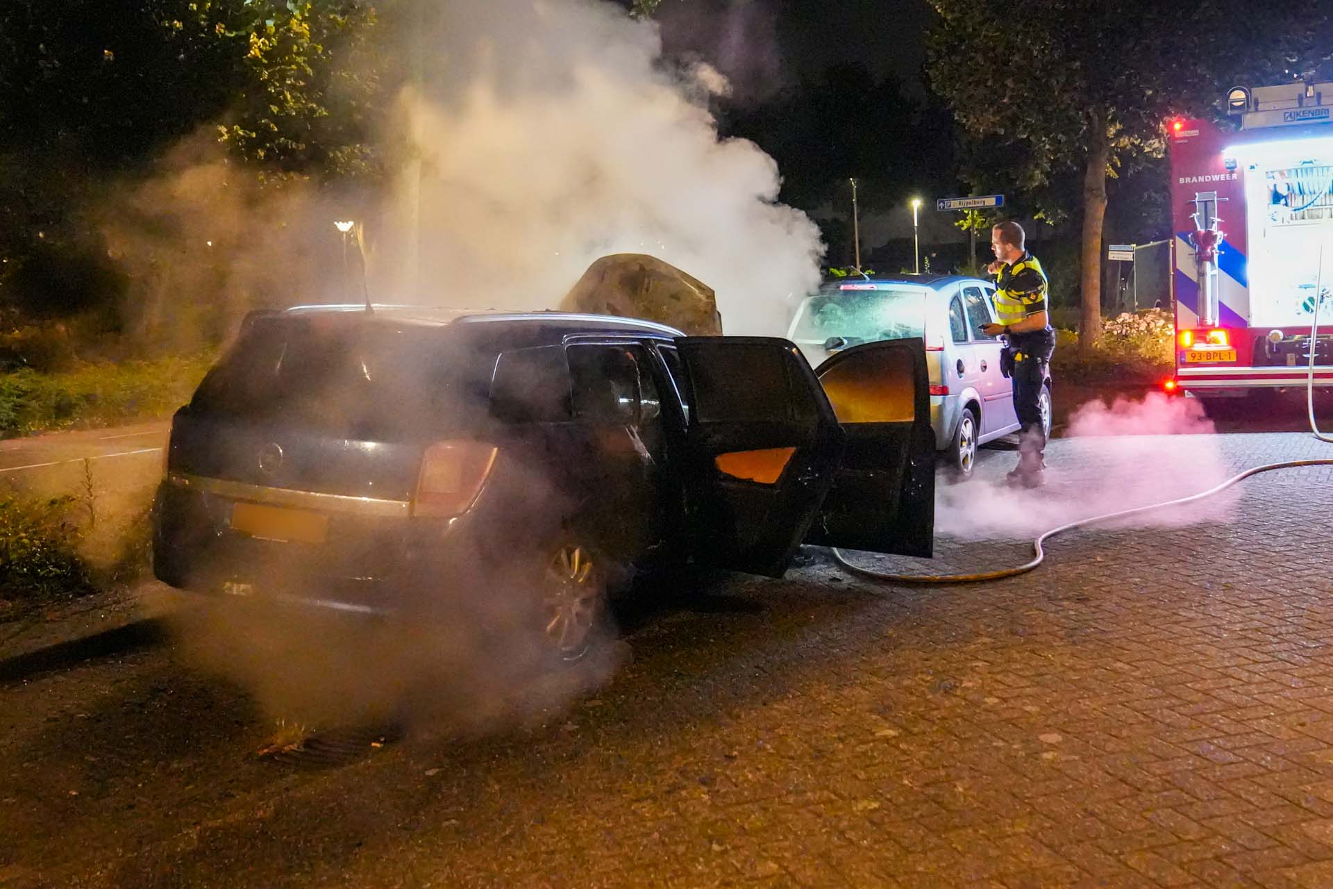 Een oplettende buurtbewoner zag de auto in brand staan en belde de 112 alarmcentrale. Bij aankomst van de brandweer sloegen de vlammen al uit de auto. De brandweer heeft de auto geblust maar deze kan wel als verloren worden beschouwd. Een auto die er voor stond geparkeerd zou ook lichte schade hebben opgelopen. Waar door de brand is ontstaan is niet bekend.