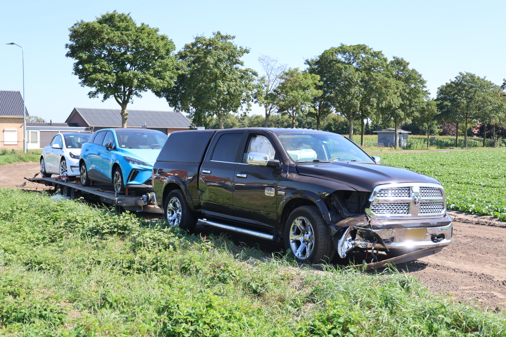 Een bestuurster van een grijze auto probeerde vanaf de rondweg de Holtheesendijk over te steken, maar zag daarbij een van links komende auto met aanhanger over het hoofd. Door de aanrijding raakte de auto met aanhanger van de weg, reed over een sloot en kwam uiteindelijk tot stilstand in een weiland. Gelukkig raakte niemand gewond, zoals bleek na controle door het toegesnelde ambulancepersoneel.