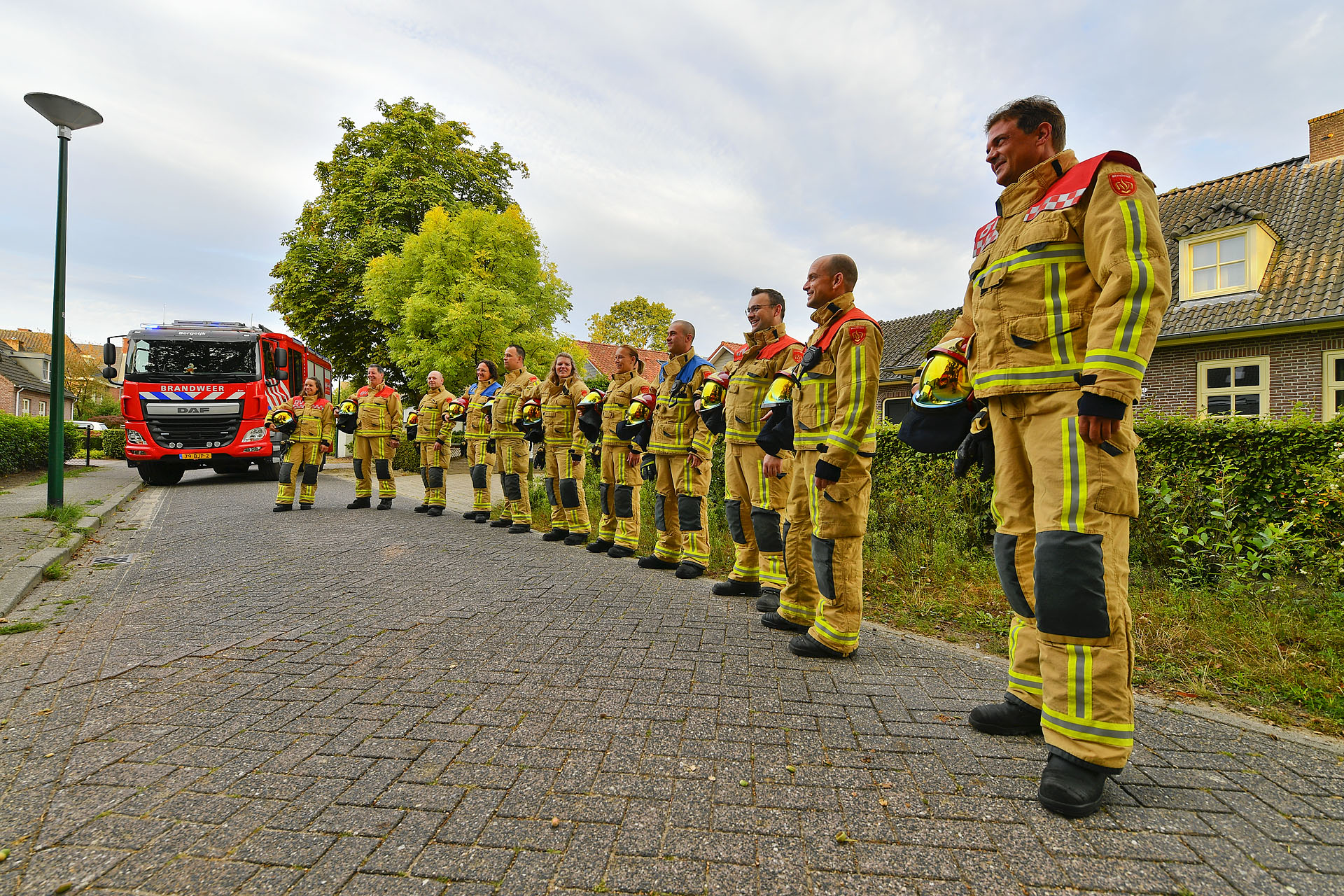 Geplaatst op 1 september 2024, om 11:51 uurBERGEIJK – Vanochtend om 08.00 uur werd de heer Sjef Bloks en zijn vrouw in Bergeijk op bijzondere wijze uit hun zondagsrust gehaald. Een stoet brandweerwagens, met loeiende sirenes, stopte voor hun deur aan de Bucht. Sjef, die zijn pager snel checkte om te zien of hij een oproep had gemist, ontdekte dat dit keer zijn collega’s speciaal voor hem kwamen. De brandweerlieden stonden in vol ornaat in linie te wachten, terwijl nieuwsgierige omwonenden uit hun ramen keken om te zien wat er gaande was.