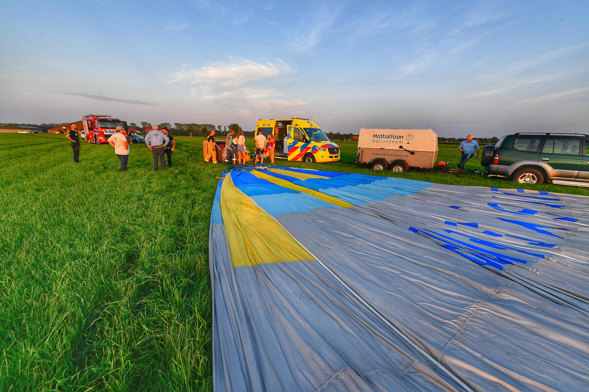 Luchtballon maakt harde landing in weiland, passagier met letsel naar ziekenhuis