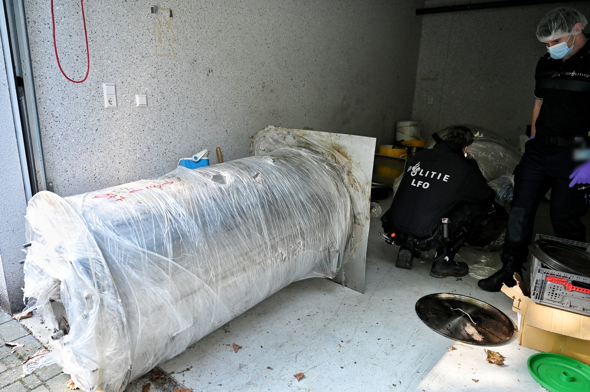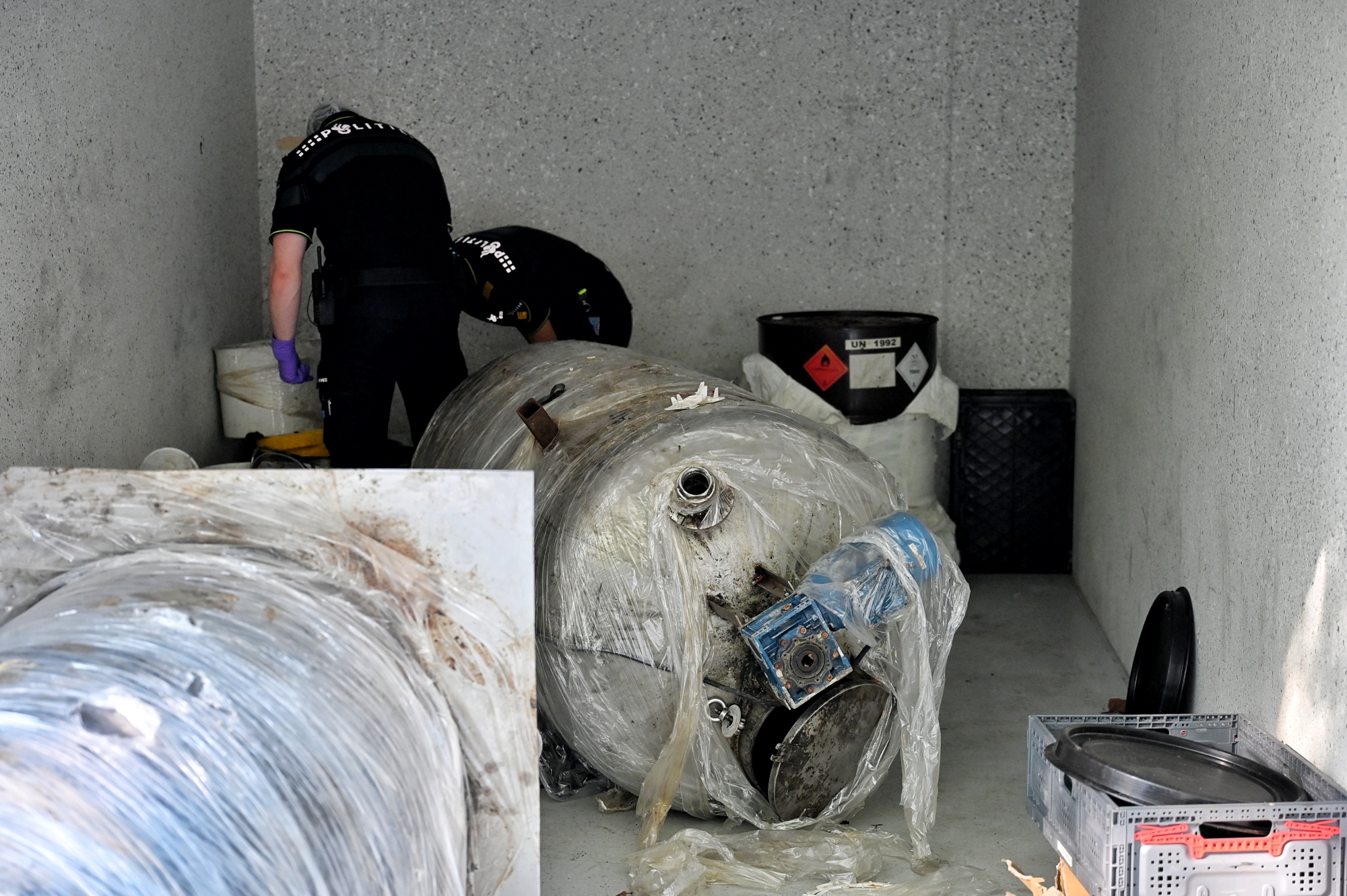 De verhuurder van de garagebox wordt niet als verdachte beschouwd, maar de politie heeft hem wel geadviseerd om regelmatig controles uit te voeren om te voorkomen dat zijn opslagruimtes voor illegale activiteiten worden gebruikt. De omgeving is afgezet met lint, en de materialen zullen later op de avond worden afgevoerd.