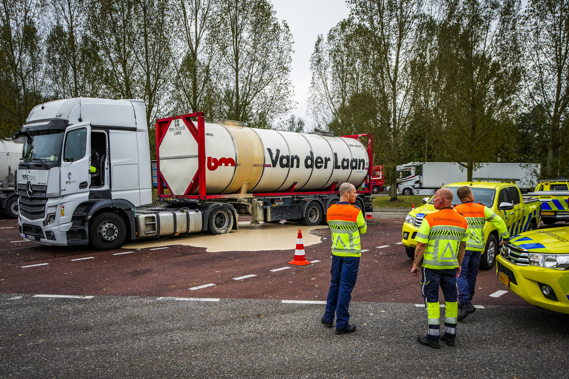 Rijkswaterstaat werd snel ter plaatse geroepen om de situatie onder controle te krijgen. Een wegdek reiniger arriveerde eveneens om te helpen met het opruimen van het gelekte biergist. Het plan was om een deel van het gist over te pompen naar een andere container, maar vanwege de hoge druk was het onzeker of dit zonder verdere complicaties zou verlopen.