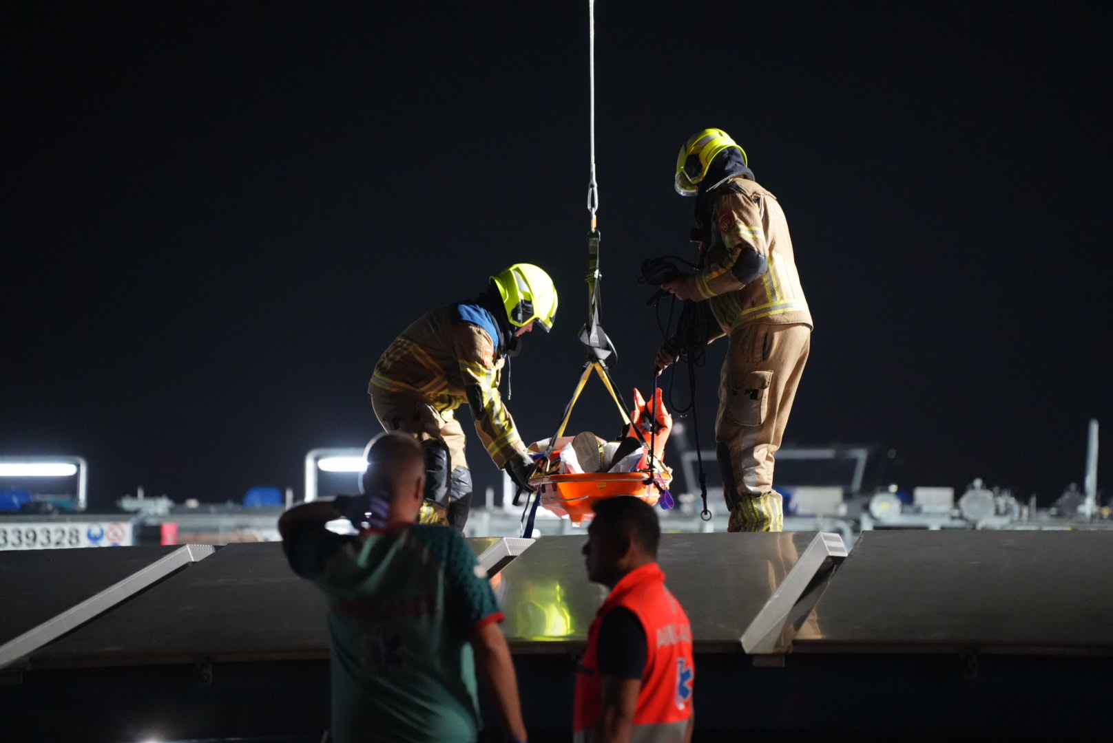 Twee ambulances en een traumahelikopter werden snel ter plaatse gestuurd. De mannen werden in het ruim gestabiliseerd, waarna ze één voor één met een grote kraan uit het schip werden gehesen. Ambulancepersoneel kreeg hierbij hulp van de brandweer, die ook een ladderwagen inzette voor verlichting tijdens de reddingsoperatie.