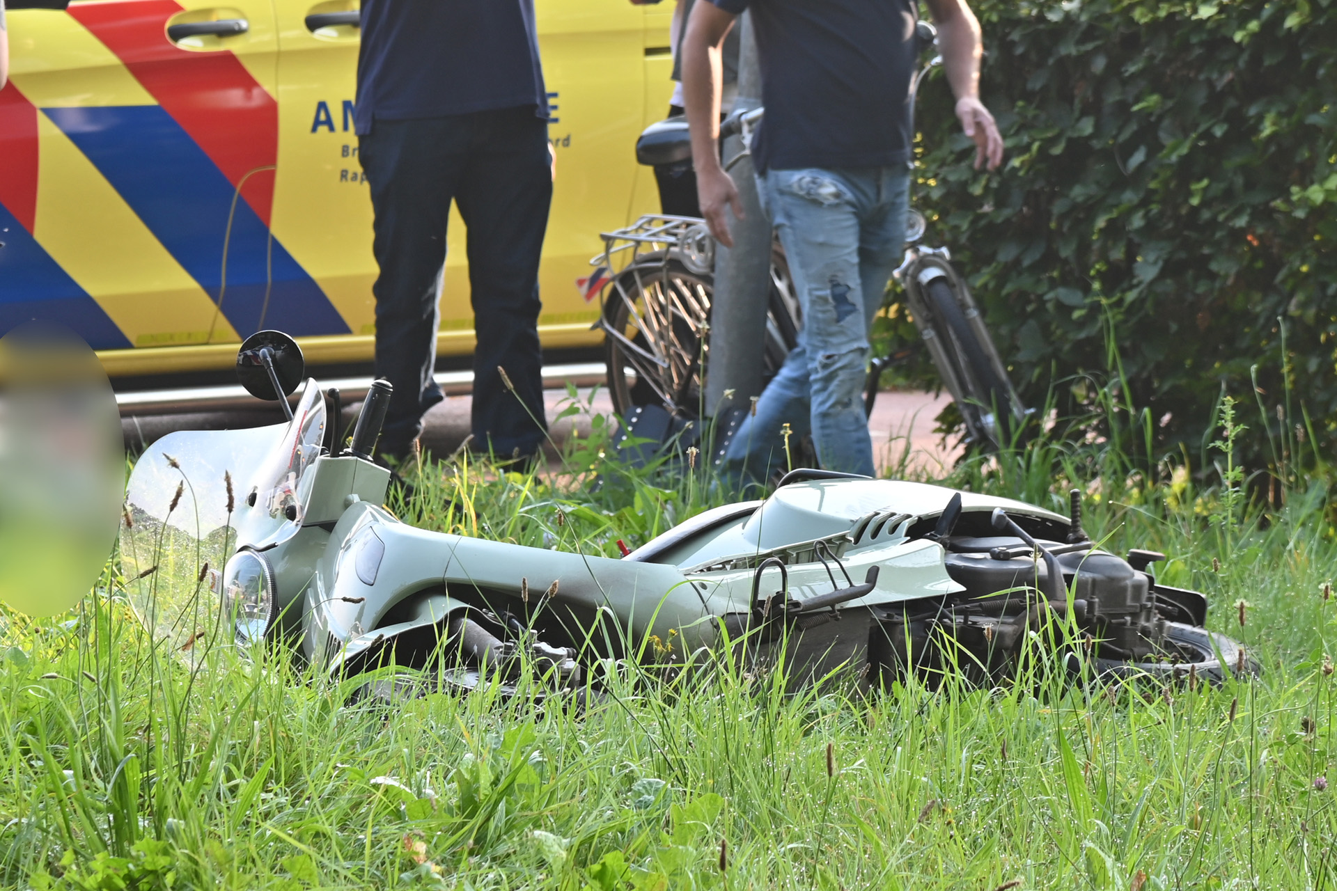 De scooter reed op het fietspad en de auto wilde afslaan in de richting van de Drie Lindendreef. De politie onderzoekt de oorzaak van de aanrijding