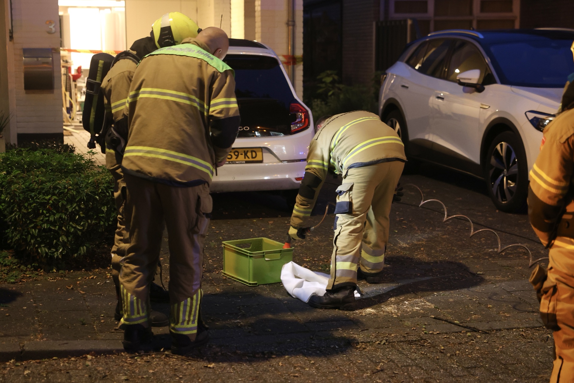 Naast de brandweereenheid kwamen ook de Adviseur Gevaarlijke Stoffen (AGS) en Officier van Dienst (OvD) ter plaatse, evenals de politie. Hoe de accu vlam kon vatten is bij ons niet bekend. Het zou gaan om een accu van een modelvliegtuig.