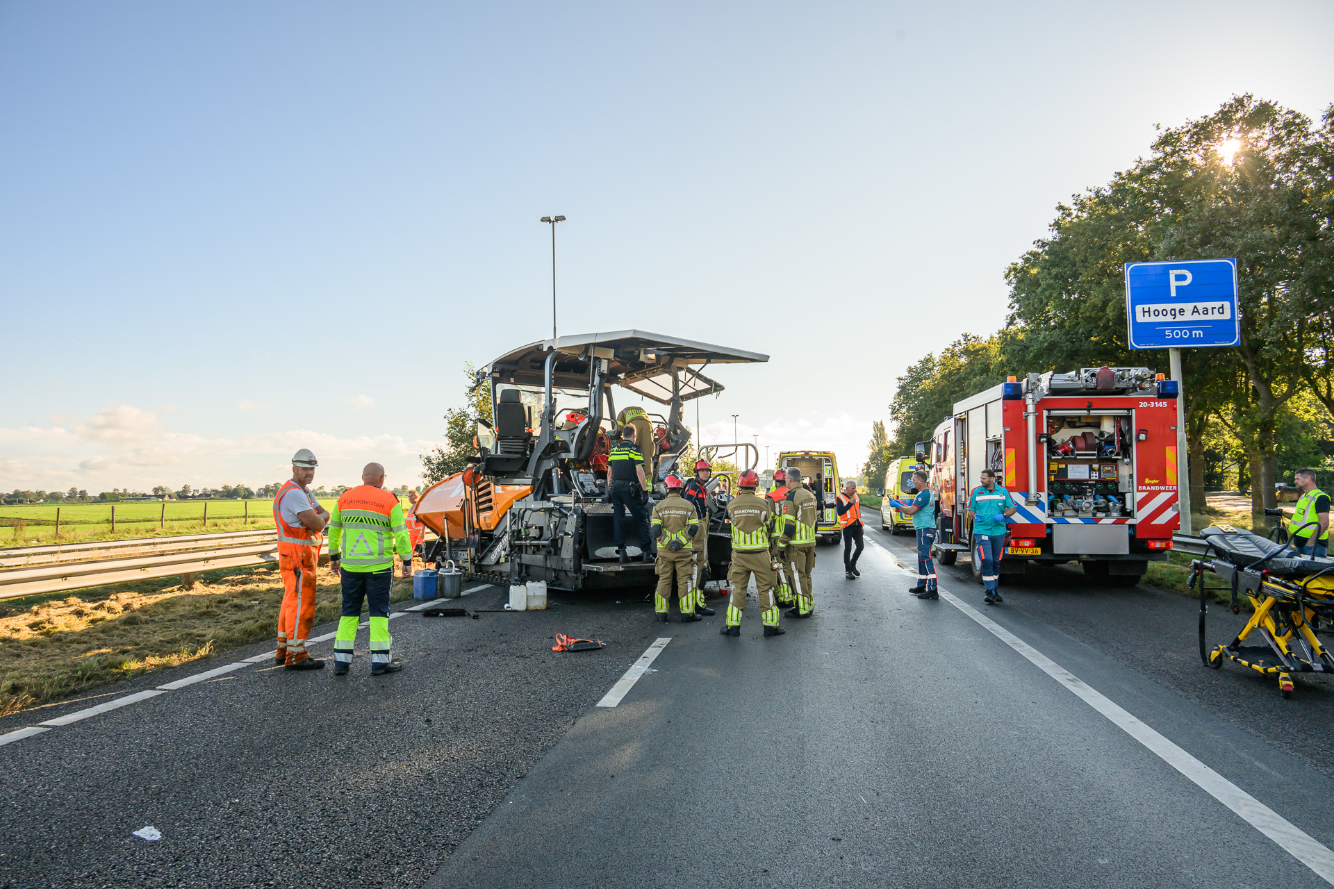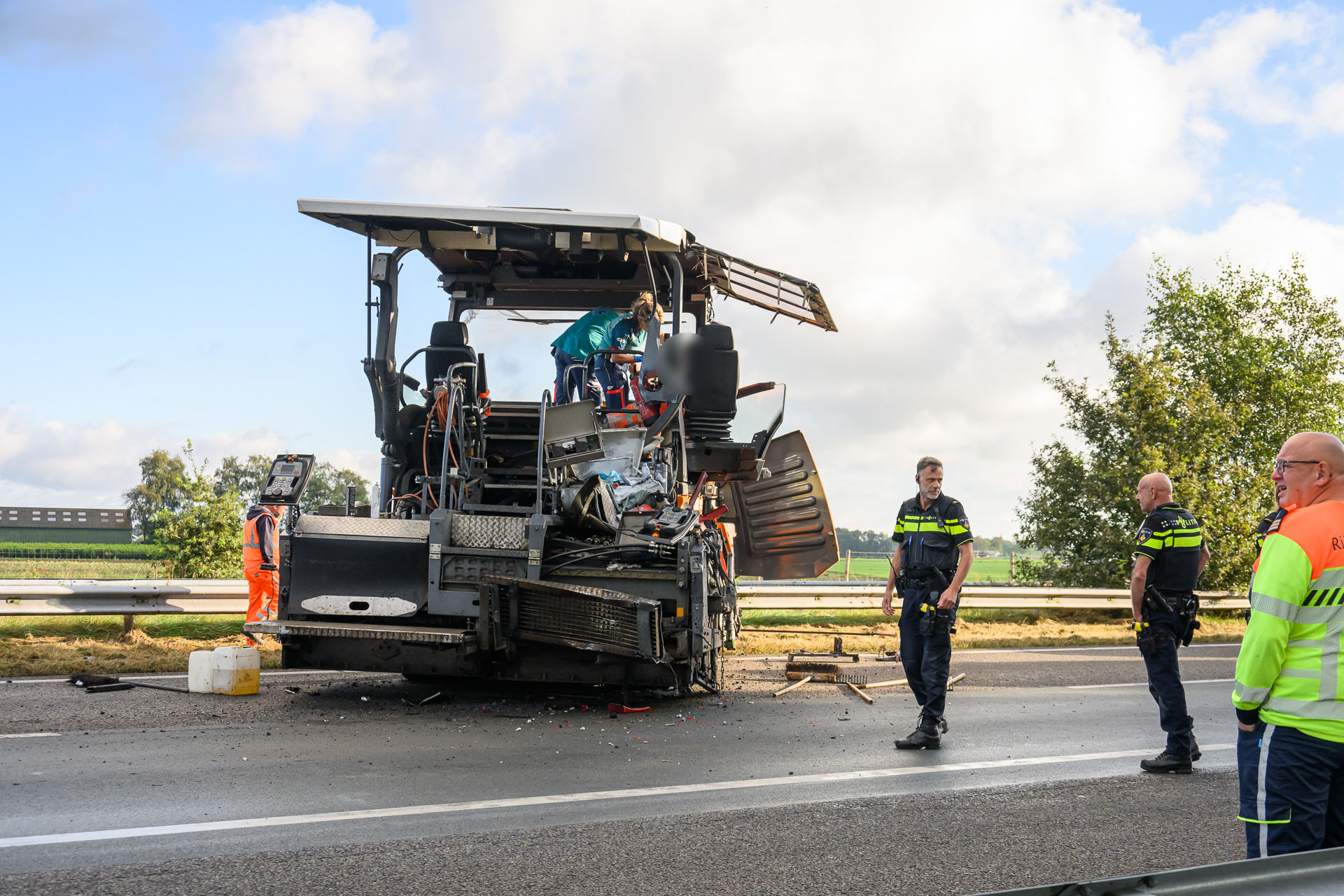 Machinist asfalteermachine gewond na aanrijding met vrachtwagen op afgesloten A58