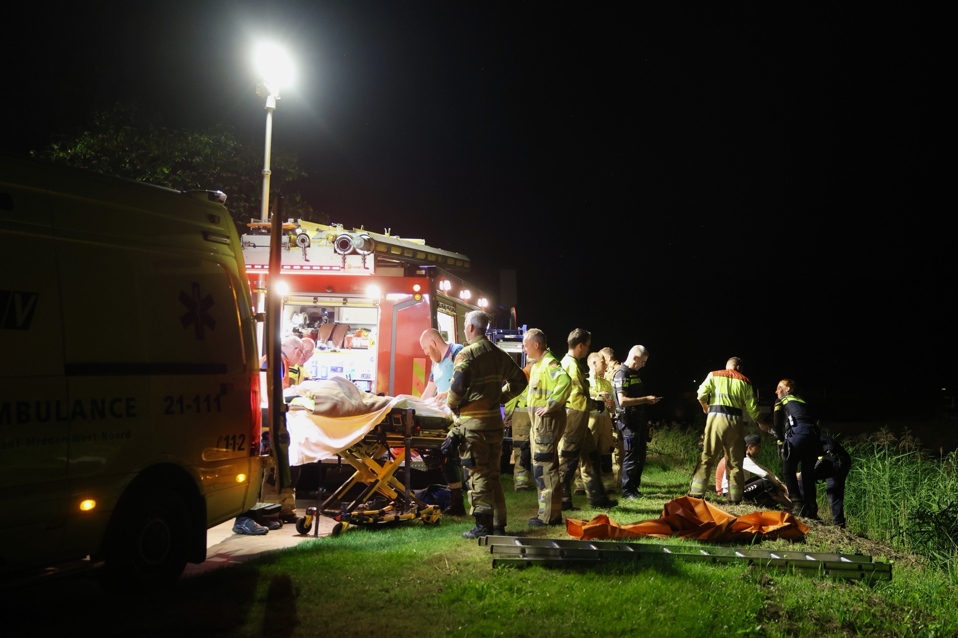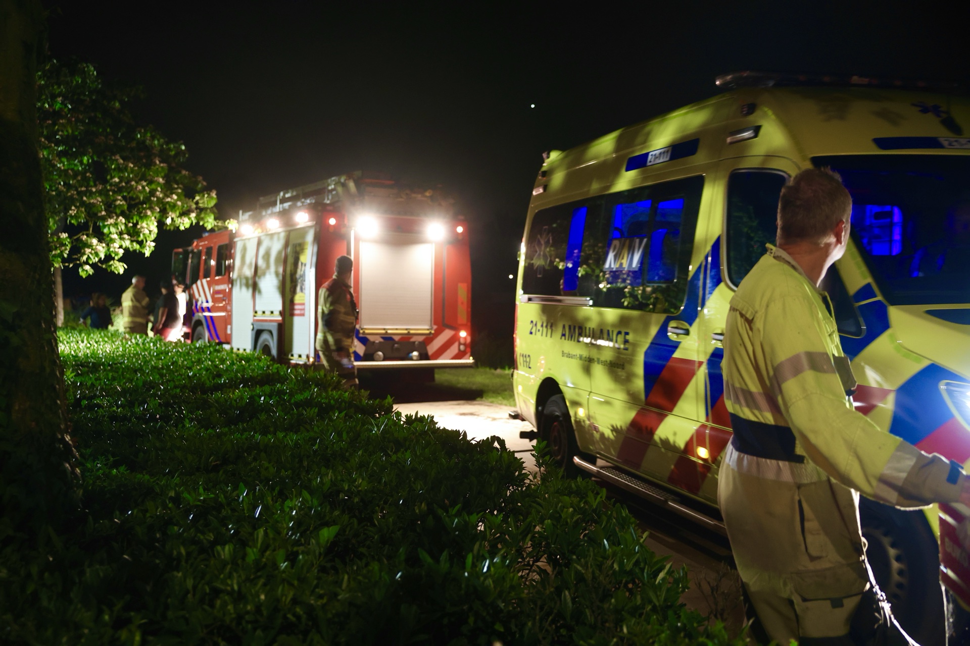 De man is met een ambulance naar het ziekenhuis gebracht, en brandweerlieden schermden hem af voor privacy.