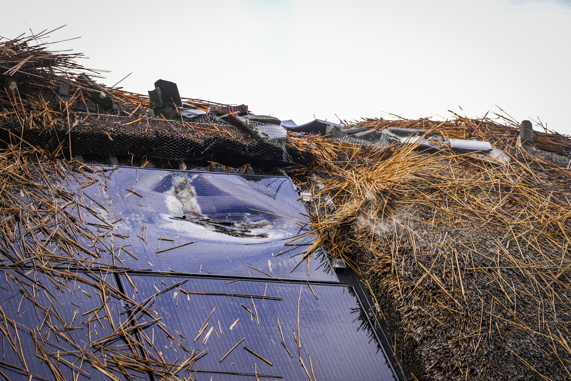 Brandweer uitgerukt voor brand in rieten dak met zonnepanelen